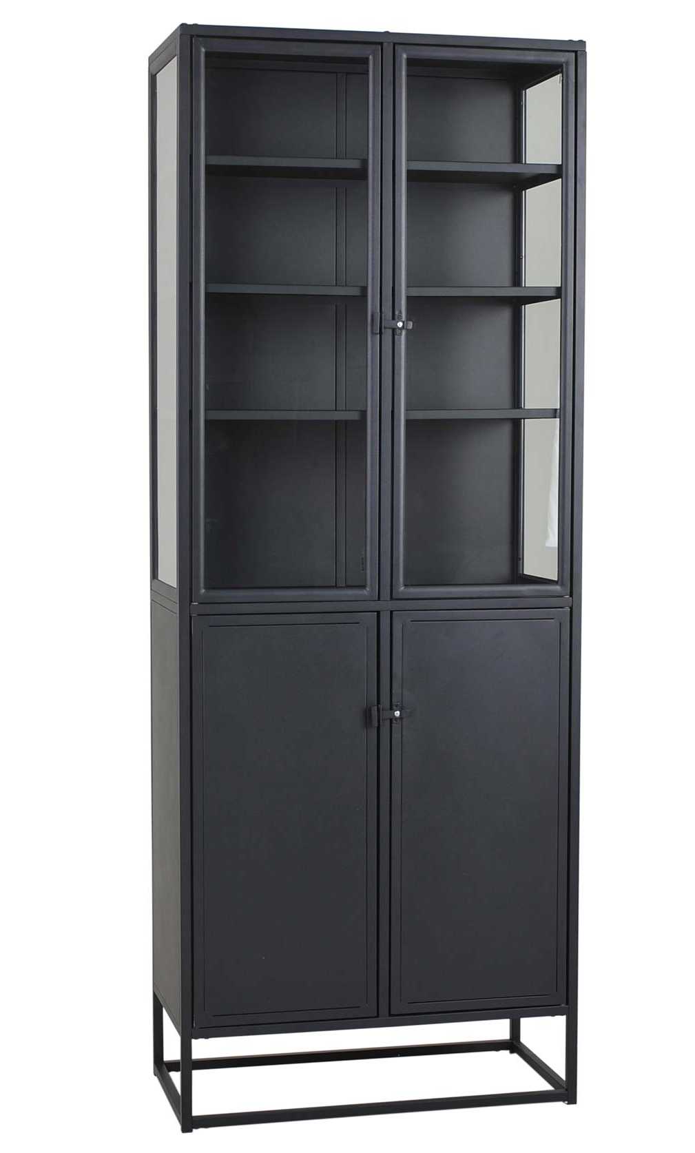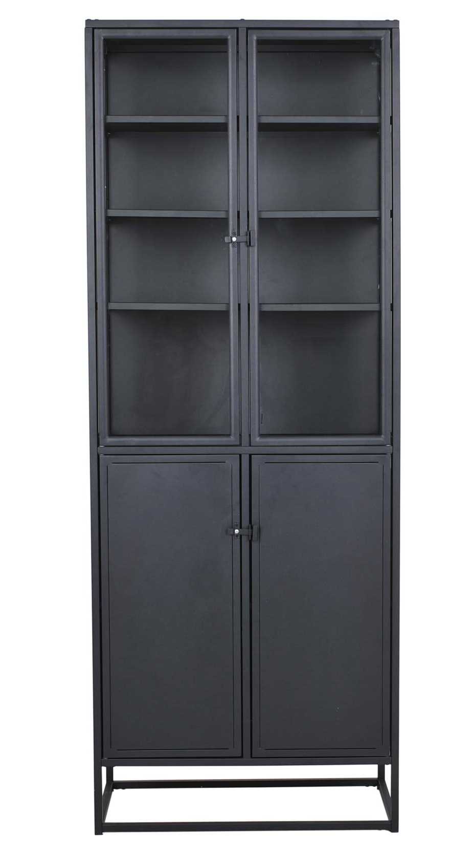 Riffi vitriinikaappi yhdistää mustan metallirungon ja iskunkestävän lasin, luoden modernin ja ajattoman ilmeen mihin tahansa sisustukseen. Kaksi lasiovea kolmen hyllyn kanssa sekä alakaappi yhdellä hyllyllä tarjoavat runsaasti säilytystilaa esineiden esillepanoon ja järjestämiseen. Teollinen viimeistely ja kestävät materiaalit takaavat pitkäikäisen ja persoonallisen kokonaisuuden, joka erottuu tilassa.