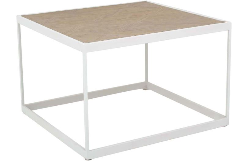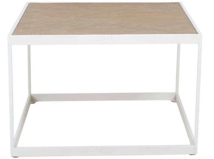 Risör-sohvapöytä yhdistää valkolakatun metallirungon ja harmaanruskean parkettikuvioinnin, luoden modernin ja elegantin ilmeen. Kestävä vaneri ja metallirunko takaavat tukevuuden ja pitkäikäisyyden, ja kompaktit mitat sopivat erityisesti pienempiin tiloihin.
