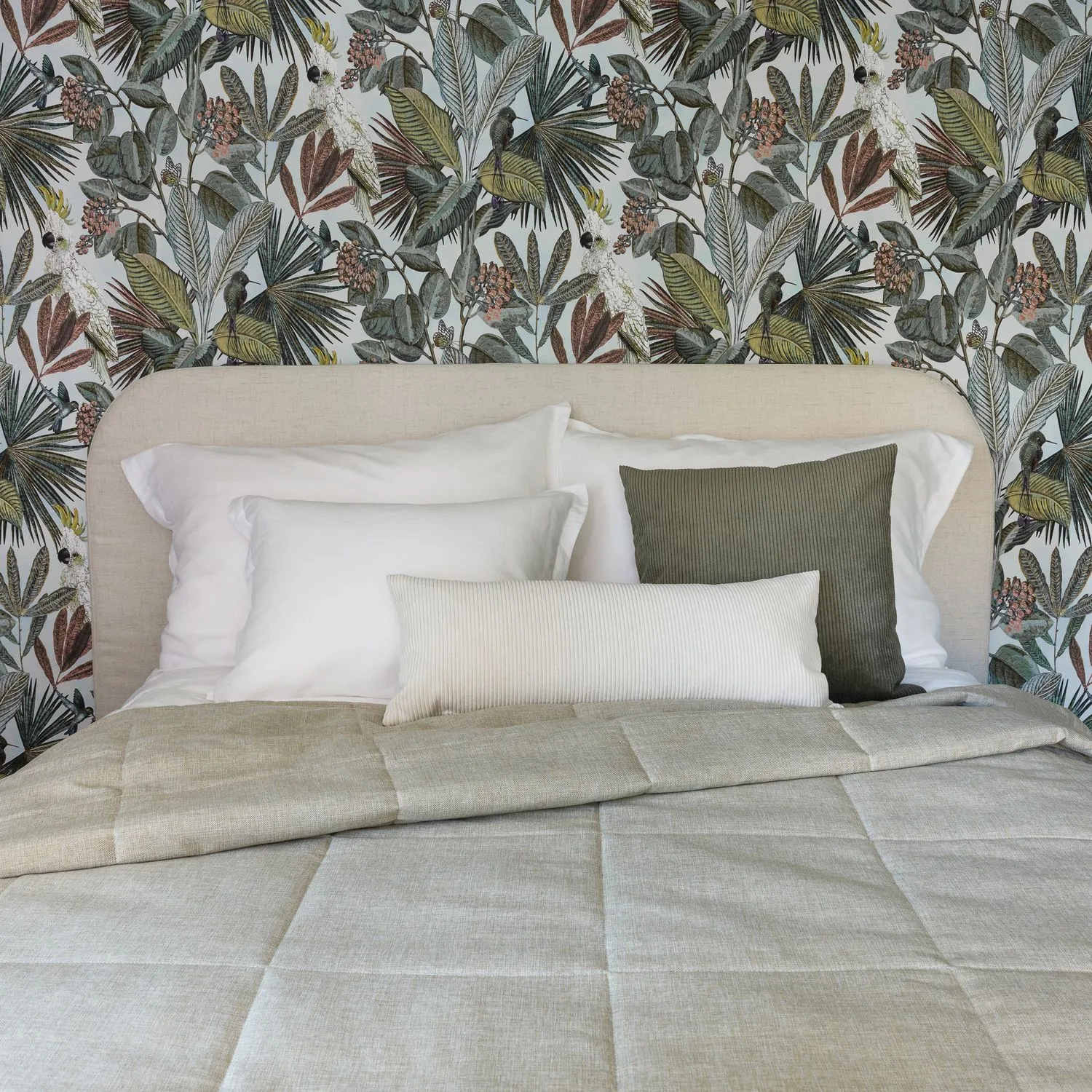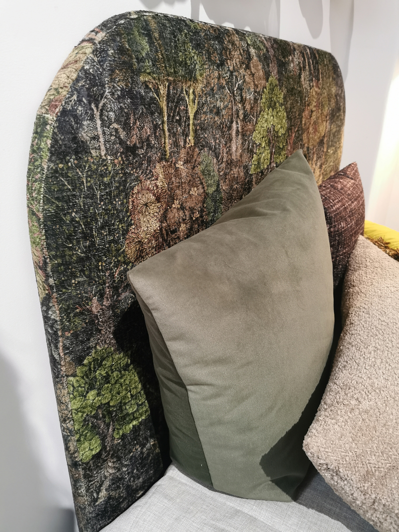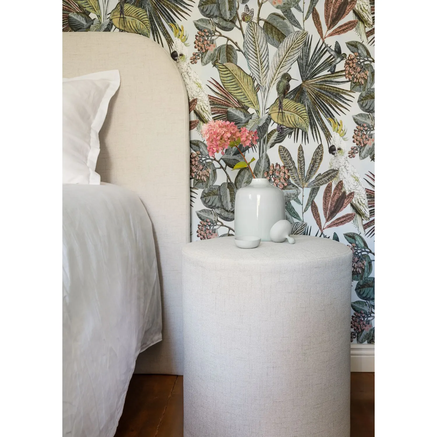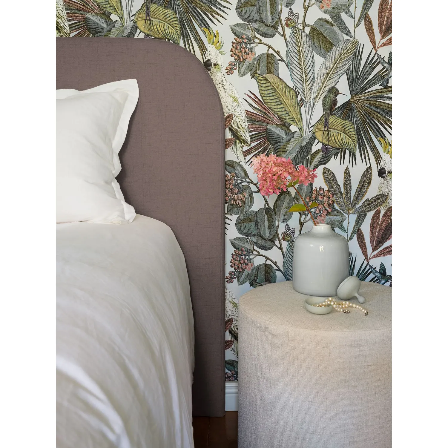 Round-sängynpääty on suorakaiteen muotoinen, elegantisti viimeistelty katseenvangitsija, joka luo makuuhuoneeseen ylellisen ja huolitellun ilmeen. Pehmustettu pääty on saatavilla neljässä eri koossa. Päädyn koivuvanerirunko on verhoiltu valkoisella, pehmeällä vanuvelourhupulla, johon irrotettava päällinen kiinnitetään tukevasti tarranauhalla. Irtopäällisen varastokankaan Kabal-kangas on mattapintainen ja pellavahenkinen. Kangas on kestävää verhoilulaatua ja päällinen on vesipestävä 40 asteessa.
