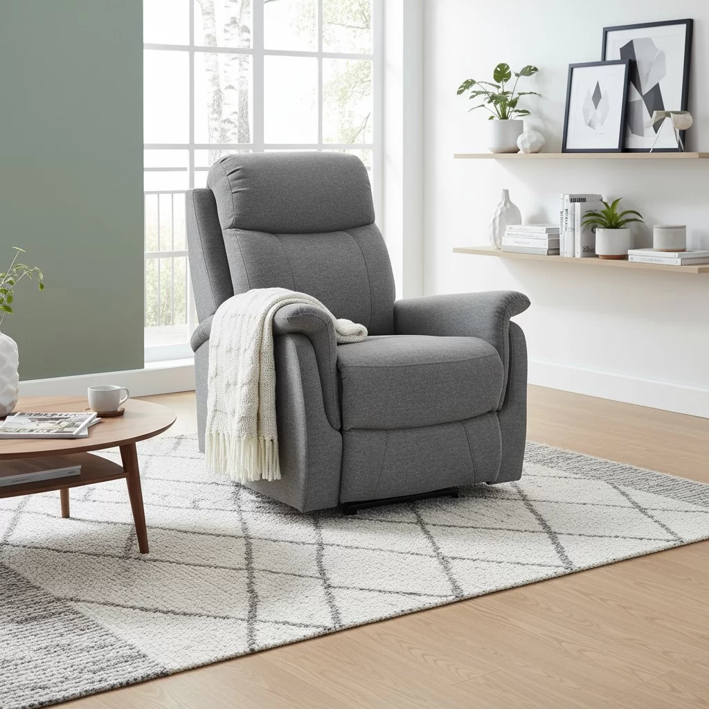 Rubin Recliner -nojatuoli tarjoaa täydellisen yhdistelmän rentoutumista ja toiminnallisuutta. Pyörintä- ja keinuntamekanismi mahdollistavat pehmeän liikkeen, ja laadukas Okin-mekanismi vie tuolin lähes makuuasentoon, kun avaat sen kätevästi sivukahvasta.