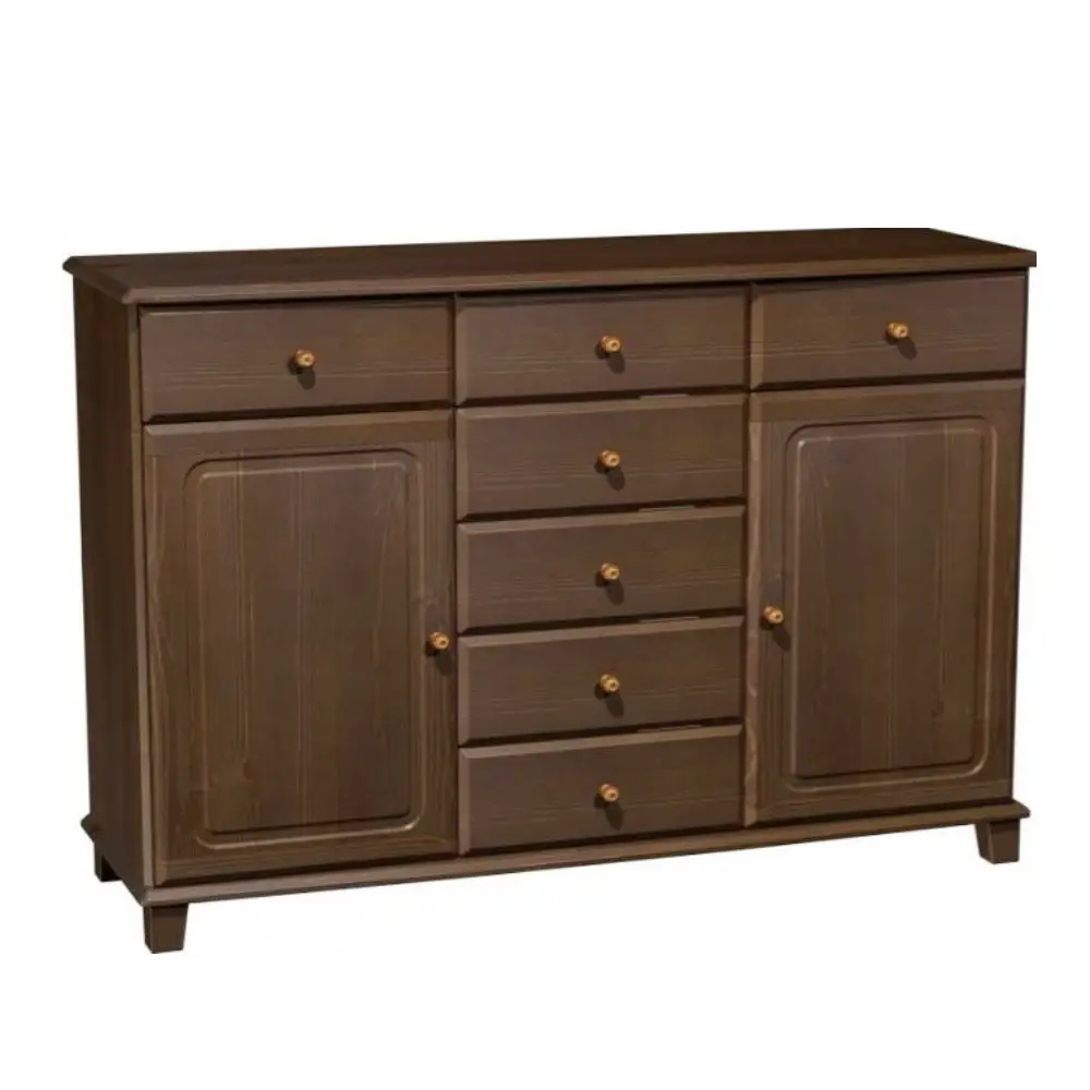 Senkissä on kaksi kaappia ja seitsemän metallisilla liukukiskoilla varustettua vetolaatikkoa, jotka tarjoavat runsaasti säilytystilaa kodin eri tarpeisiin. Laatikot liukuvat pehmeästi ja kaapit tarjoavat tilaa suuremmille tavaroille – Rusko Mäntysenkki 135027 yhdistää käytännöllisyyden ja tyylin täydellisesti. Tämä senkki sopii mainiosti olohuoneeseen, ruokailutilaan tai makuuhuoneeseen tuomaan järjestystä ja ryhtiä.