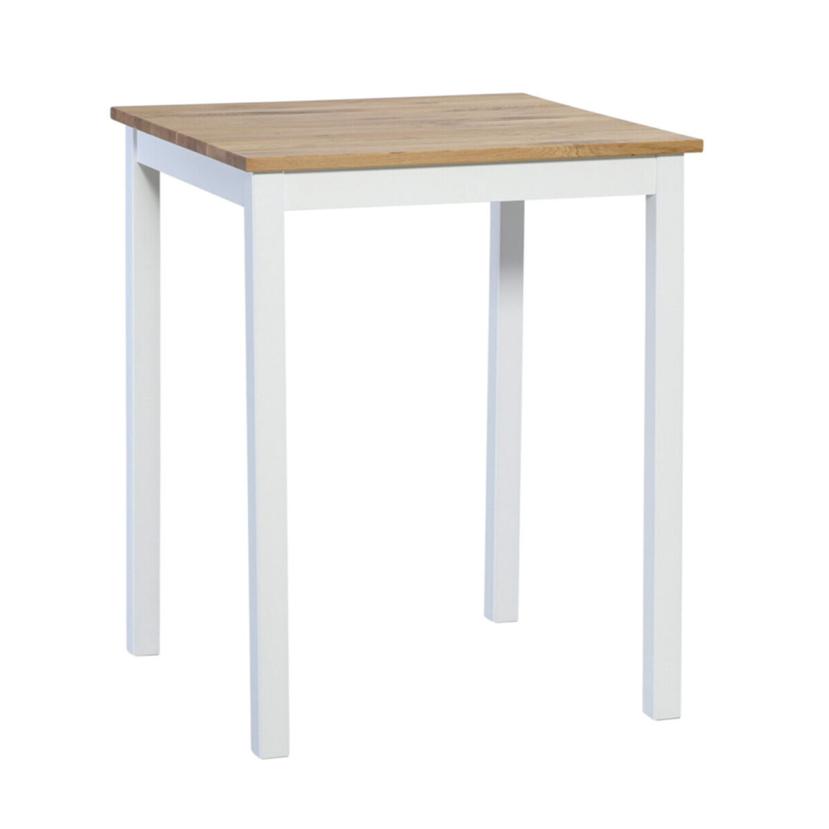 Pöydän rustiikkinen tammi­kansi yhdistyy jämäkkiin, maalatusta koivusta valmistettuihin jalkoihin ja sokkeliin, jotka tuovat rakenteelle tukevuutta ja kestävyyttä pitkään käyttöön. Luonnonmateriaalien yhdistelmä luo pöydästä sekä tyylikkään että käytännöllisen keskipisteen keittiöön, oleskelutilaan tai baarinurkkaan.