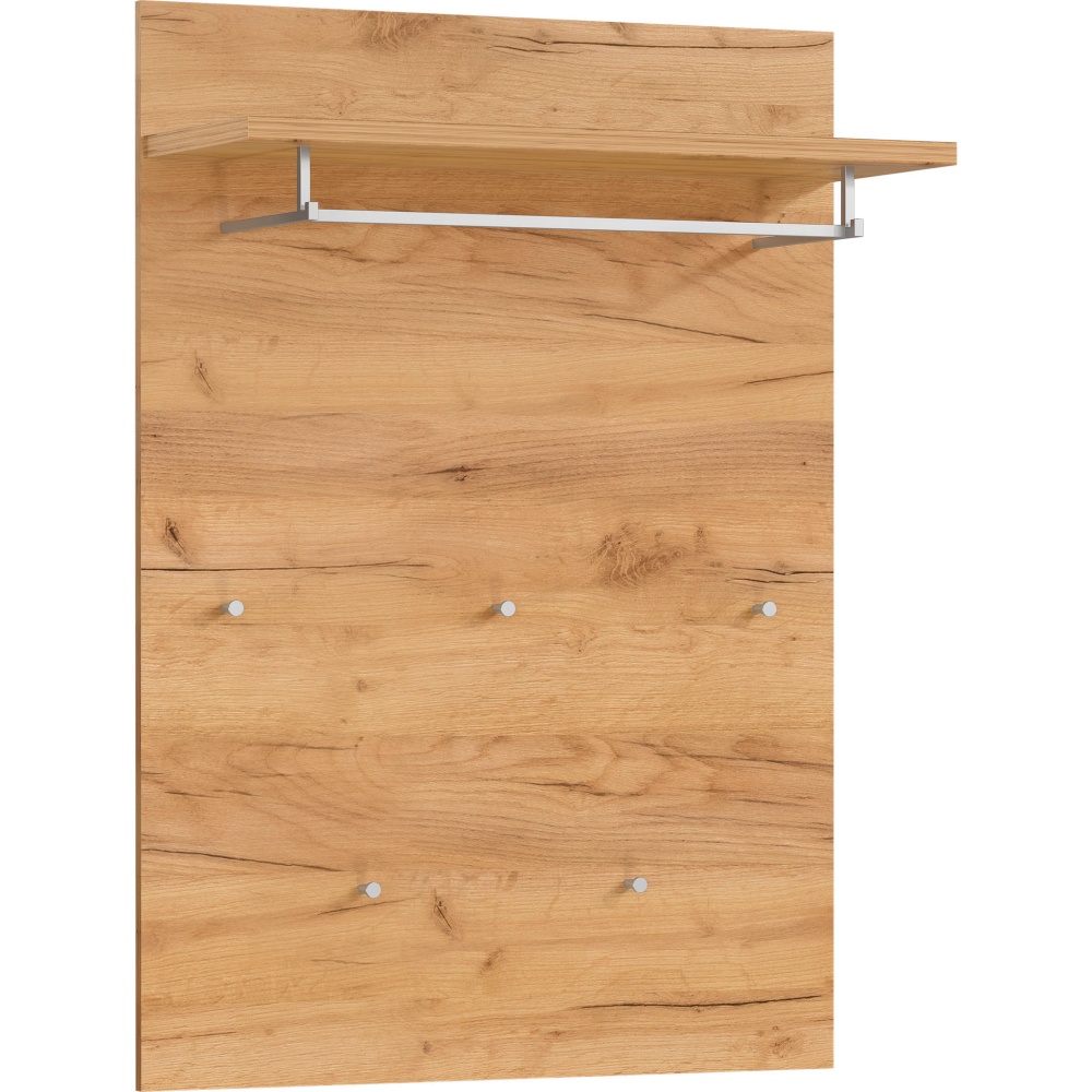 Neljä metallikoukkua, vaatetanko ja käytännöllinen hattuhylly tarjoavat runsaasti tilaa takeille, hatuille ja asusteille. Selkeä rakenne pitää eteisen siistinä ja tekee arjen pukeutumisesta sujuvaa.