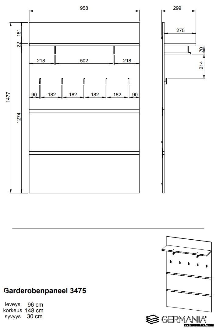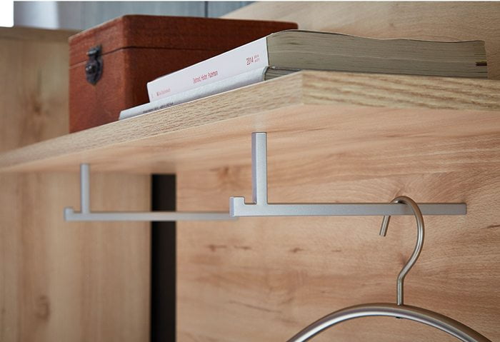Lissabon seinänaulakko 3475 yhdistää hattuhyllyn, kaksi vaatetankoa ja viisi erillistä seinäkoukkua, tarjoten runsaasti säilytystilaa niin arjen vaatteille kuin asusteille. Sen harkittu kokonaisuus tuo eteiseen ryhtiä ja modernia ilmettä ilman, että tila käy ahtaaksi.