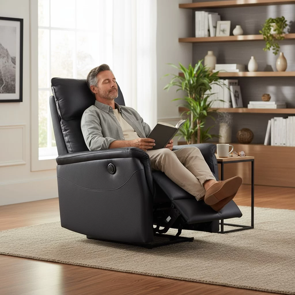 Sofia-lepotuoli on kompakti sähkörecliner, joka tarjoaa ylellisen mukavuuden ja aidon nahkaverhoilun. Napinpainalluksella säädettävä mekanismi ja kestävä rakenne tekevät siitä täydellisen valinnan pieniin tiloihin ilman kompromisseja mukavuudessa.