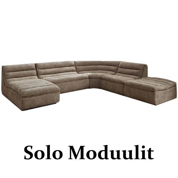 Moduulien ansiosta Solo on yhtä aikaa monipuolinen ja rohkean yksilöllinen – yhdistä 1- ja 2-istuttavat osat, kulmapalat, pitkä nojatuoli juuri sellaiseksi muodoksi kuin tilasi ja tyylisi vaativat. Voit rakentaa suuren, näyttävän kokonaisuuden olohuoneen keskipisteeksi tai valita vain muutaman moduulin kompaktimpaan tilaan. Mahdollisuudet ovat rajattomat, ja vain mielikuvituksesi määrittää lopputuloksen.