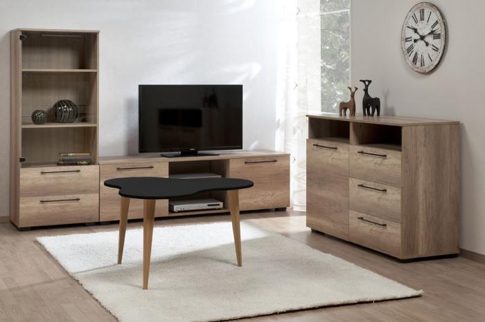 TV-taso on valmistettu korkealaatuisesta E1-luokan MFC-kalustelevystä, joka kestää aikaa ja käyttöä. Massiivipuiset jalat tuovat tukevuutta ja luonnollista lämpöä, kun taas karkaistut lasiosat lisäävät ilmeeseen keveyttä ja tyylikkyyttä.