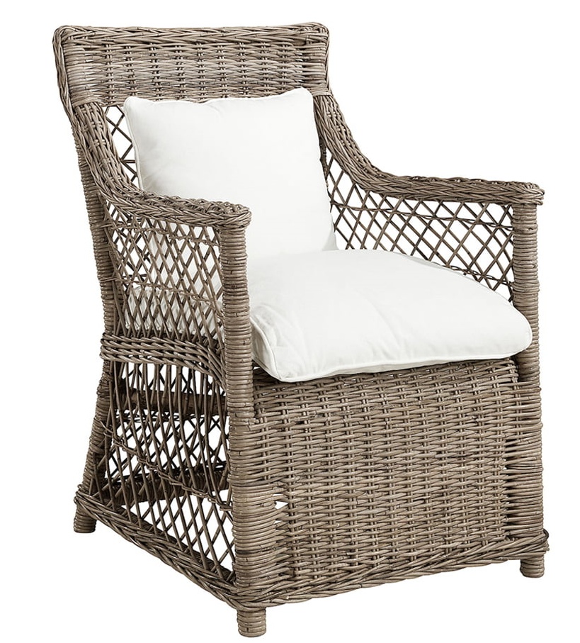 Luonnonvalkoiset istuintyynyt tarjoavat pehmeyttä ja kaunista kontrastia rottingin sävyihin, tehden nojatuolista täydellisen paikan rentoutumiseen. Pehmusteiden huolellinen viimeistely lisää ylellisyyttä ja käyttömukavuutta.