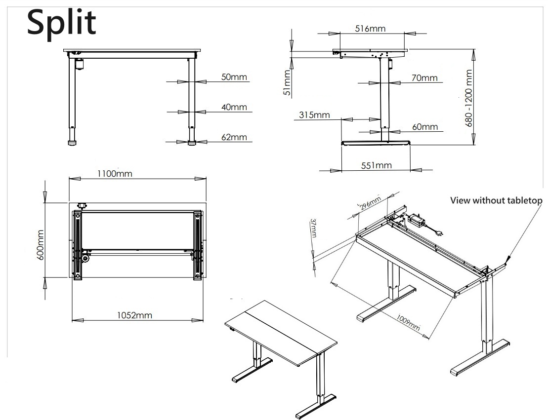 Split sähkötyöpöytä laatikolla 110x60 cm