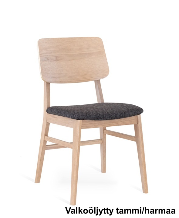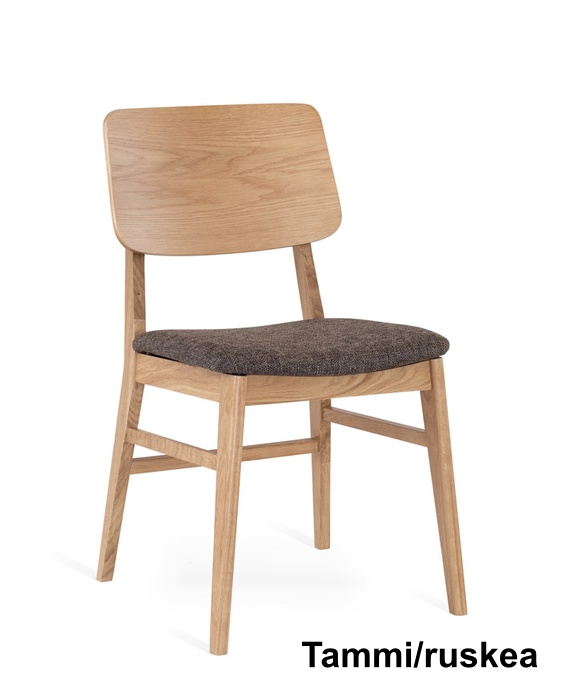 Tuolin istuinosa on verhoiltu laadukkaalla Talent-kangasverhoilulla, joka tarjoaa miellyttävän istumamukavuuden arjen ja pidempienkin ruokailuhetkien aikana. Laaja värivalikoima – ruskea/beige, ruskea/ruskea, tammi/harmaa, tammi/ruskea, valkoöljytty tammi/harmaa ja valkoöljytty tammi/ruskea – tekee tuolista helposti yhdisteltävän erilaisiin pöytiin ja sisustustyyleihin.