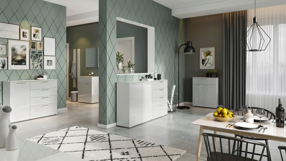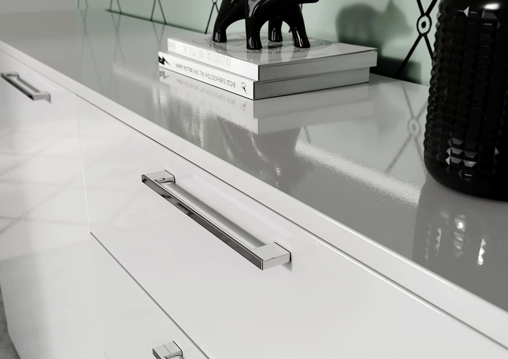 Sunnyvale senkki 3559 tuo kotiisi korkeakiiltoisen, näyttävän ilmeen, joka edustaa Sunnyvale-tuoteperheen modernia eleganssia. Sen tyylikäs pinta ja krominsävyiset yksityiskohdat tekevät senkistä sisustuksen keskipisteen, joka viimeistelee huoneen ilmeen.