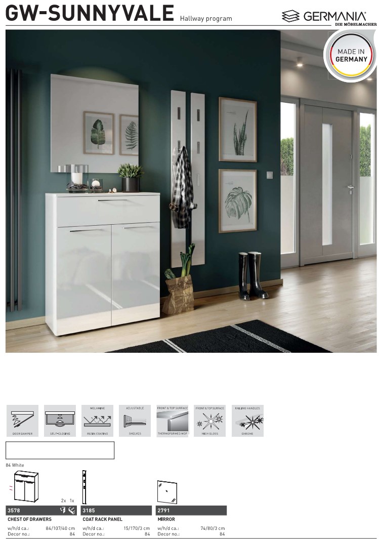 | 186 cm | 40 cm | 107 cm | cm | cm | cm | cm | cm | cm | cm | cm | cm | cm | cm | cm | cm | cm | cm | cm | cm | cm | cm | cm | cm | cm | cm | cm | cm | ABS reunat, Edusta lämpömuovattua Mdf, Kalustelevy, Korkeakiiltoinen, Melamiinihartsipinoite | Valkoinen | cm | Korkeussäädettävät hyllyt, Laatikoissa itsestään sulkeutuva mekanismi, Ovissa hidastinmekanismi | Saatavana kasattuna - kasaus tilataan kassalla, Tilaustuote | Toimitus osina | 88 kg | Saksa | cm | cm | cm |
