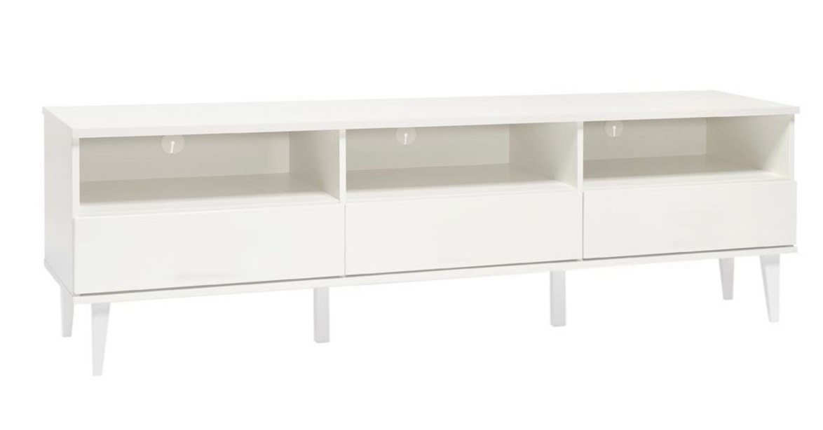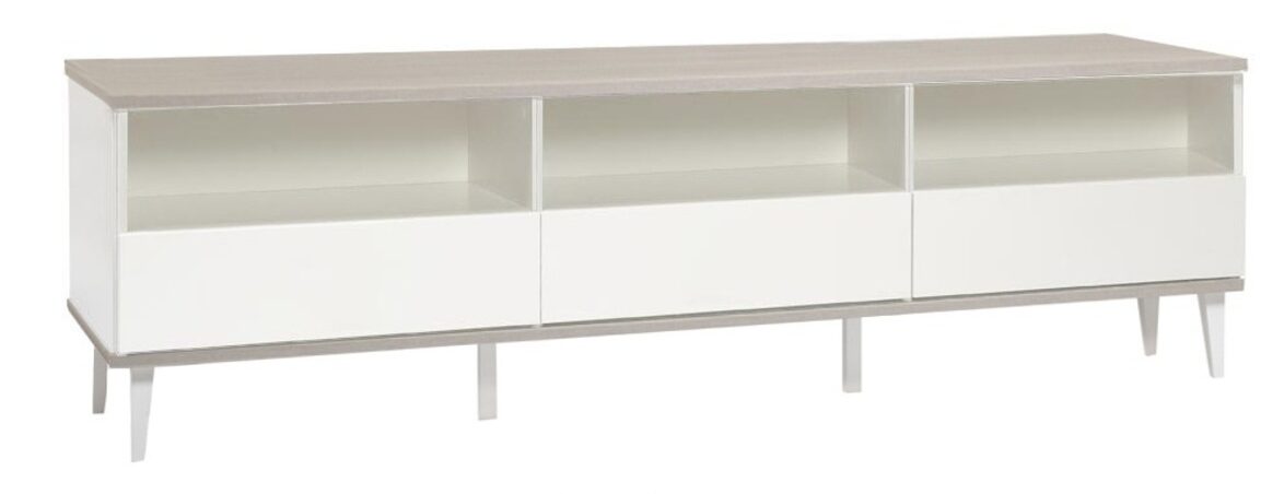 Kolme vetimetöntä laatikkoa ja avohylly tarjoavat reilusti säilytystilaa viihde-elektroniikalle ja muille kodin tarvikkeille. Push-to-open -ponnahdusmekanismi tekee käytöstä sujuvaa ja korostaa modernia muotoilua. Valmistettu kestävästä 18 mm kalustelevystä ja maalatusta massiivipuusta, mikä takaa kalusteen pitkäikäisyyden, tukevuuden ja kotimaisen huonekalutuotannon korkean laadun.