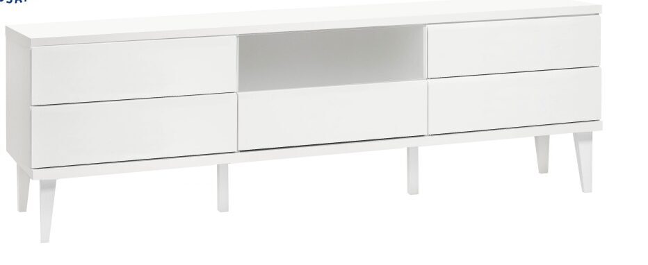 Moderni, selkeälinjainen muotoilu ja valittavissa olevat värit – valkoinen tai hopeajalava/valkoinen – tekevät tästä tasosta ajattoman ja helposti eri sisustustyyleihin sopivan valinnan. Viisi tilavaa laatikkoa ja maitolasi yhden hyllyn edessä tarjoavat runsaasti säilytystilaa viihde-elektroniikalle ja kodin tarvikkeille. Push-to-open ponnahdusmekanismi tekee käytöstä vaivatonta ja viimeistelee tasaisen, vetimettömän ilmeen.