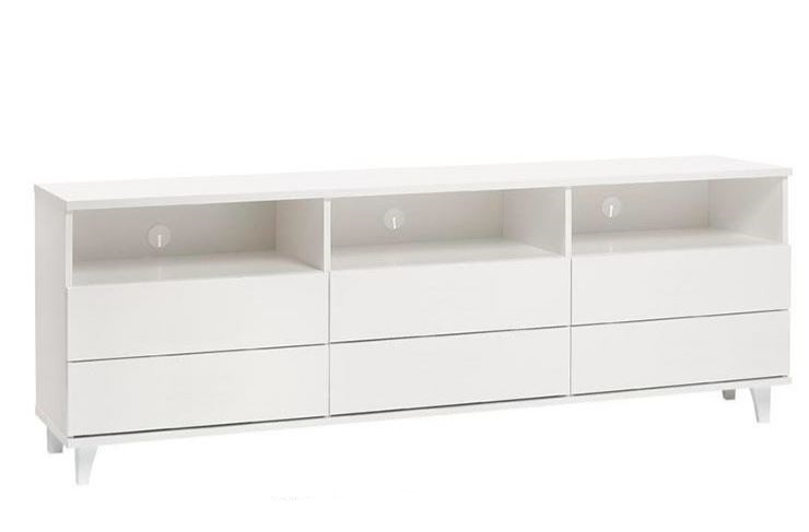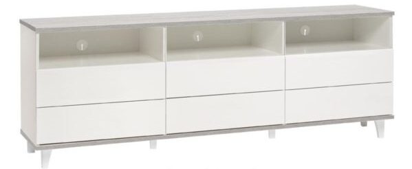Kuusi push-to-open mekanismilla varustettua laatikkoa ja kolme avointa hyllyä tarjoavat runsaasti säilytystilaa, pitäen tavarat siististi järjestyksessä ja helposti saatavilla. Senkki on valmistettu vahvasta 18 mm kalustelevystä ja jalat kestävästä, maalatusta massiivipuusta. Näiden materiaalien yhdistelmä takaa tukevuuden, kestävyyden ja pitkän käyttöiän.