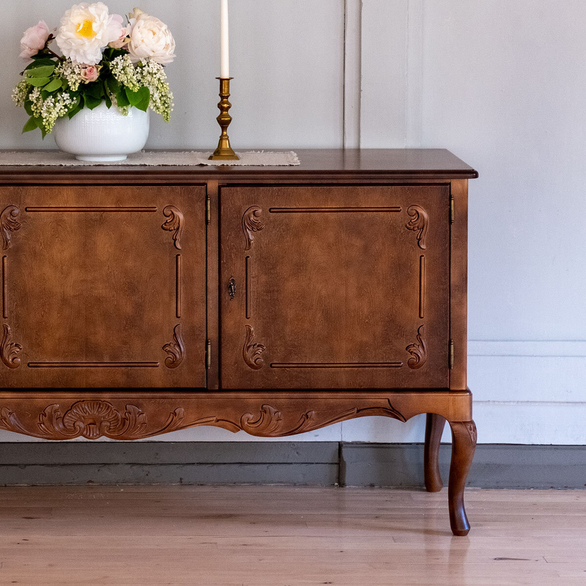 Kotimainen Talonpoikaisrokokoo astiakaappi tai senkki – käsityön taidonnäyte kotiisi