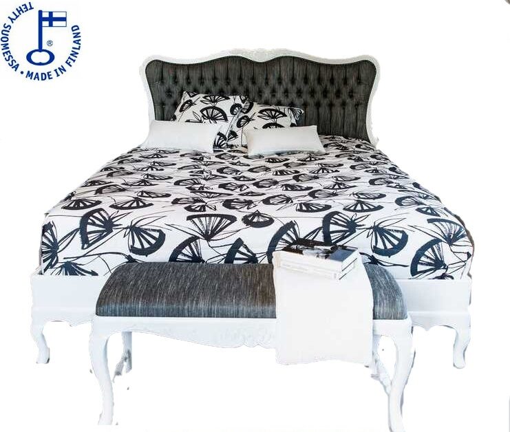 Talonpoikaisrokokoo divaanisänky on verhoiltu Ajatar-kankaalla ja henkii rokokootyylin kauneutta pyöristetyillä muodoillaan, kaarevilla jaloillaan ja käsin veistetyillä koristeaiheilla – lehtiornamenteilla ja simpukkaa muistuttavalla rocaille-kuviolla. Kestävä puusälepohja ja huolellinen rakenne takaavat mukavuuden ja pitkäikäisyyden, ja sänky on helppo koota ilman erillisiä työkaluja.