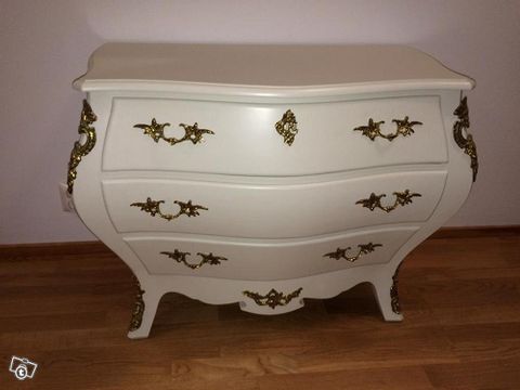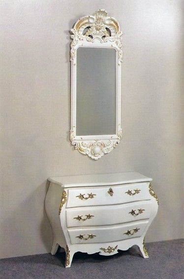 sisältää kaarevalinjaisen mahalipaston ja upean seinäpeilin, jotka tuovat eteiseen arvokkuutta ja käytännöllisyyttä. Saatavana useissa väreissä ja verhoiluissa, lisähinnasta myös käsin maalatulla kulta- tai harmaapatinoinnilla.