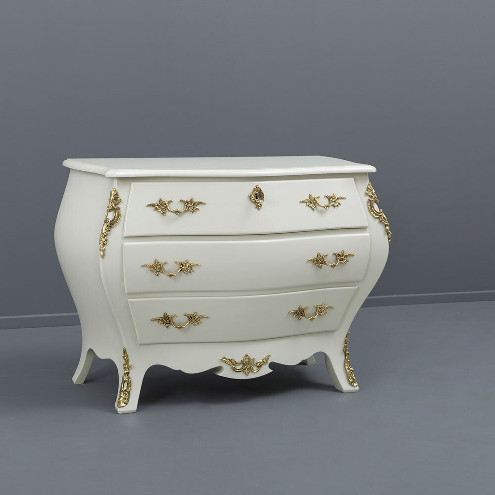 Sarjan kalusteet valmistetaan kotimaisena käsityönä, mikä takaa erinomaisen laadun ja kestävyyden. Saatavana useissa väreissä ja verhoiluissa – lisähinnasta voit viimeistellä ryhmän käsin maalatulla kullan- tai harmaanvärisellä patinoinnilla, joka korostaa sen hienostuneita yksityiskohtia.
