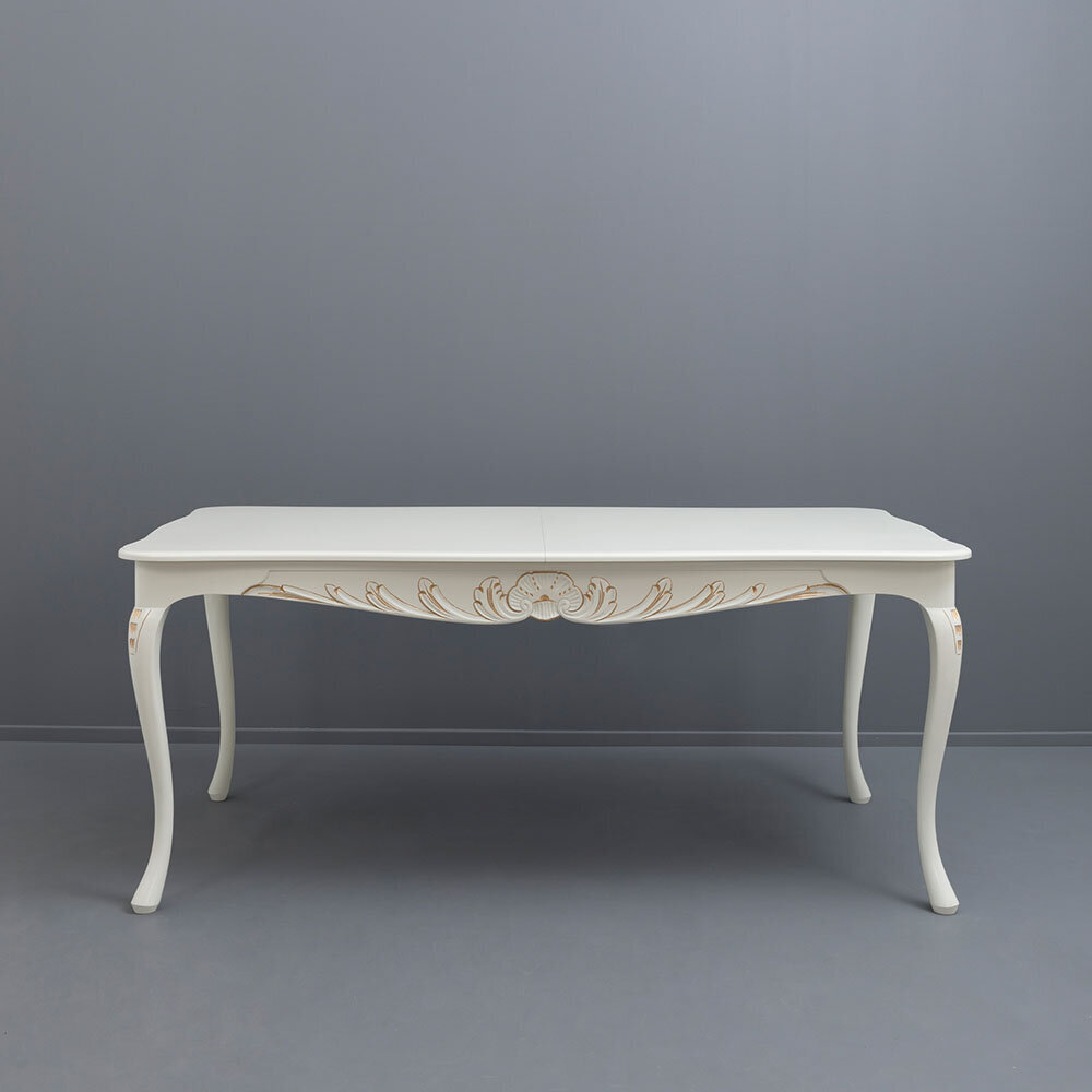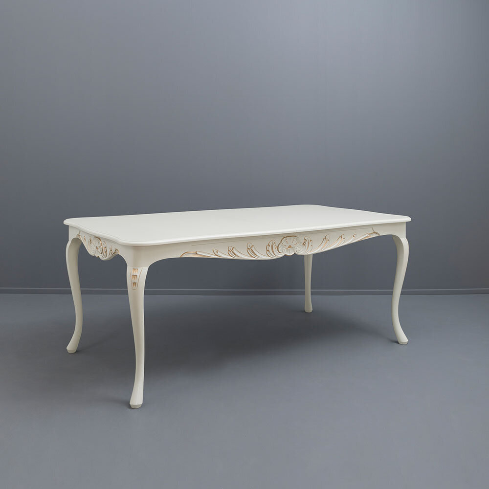 Valmistettu kotimaisena käsityönä, pöytä on saatavilla useissa eri väreissä, ja sen voi halutessaan viimeistellä käsin maalatulla kullan- tai harmaanvärisellä patinoinnilla. Huolellinen viimeistely ja laadukas työ takaavat kalusteen kestävyyden ja arvokkuuden vuosikymmeniksi.
