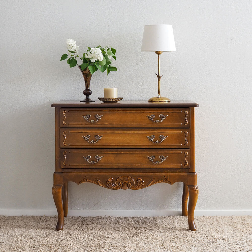 Kotimainen Talonpoikaisrokokoo lipasto – kauneutta ja käytännöllisyyttä kolmella laatikolla