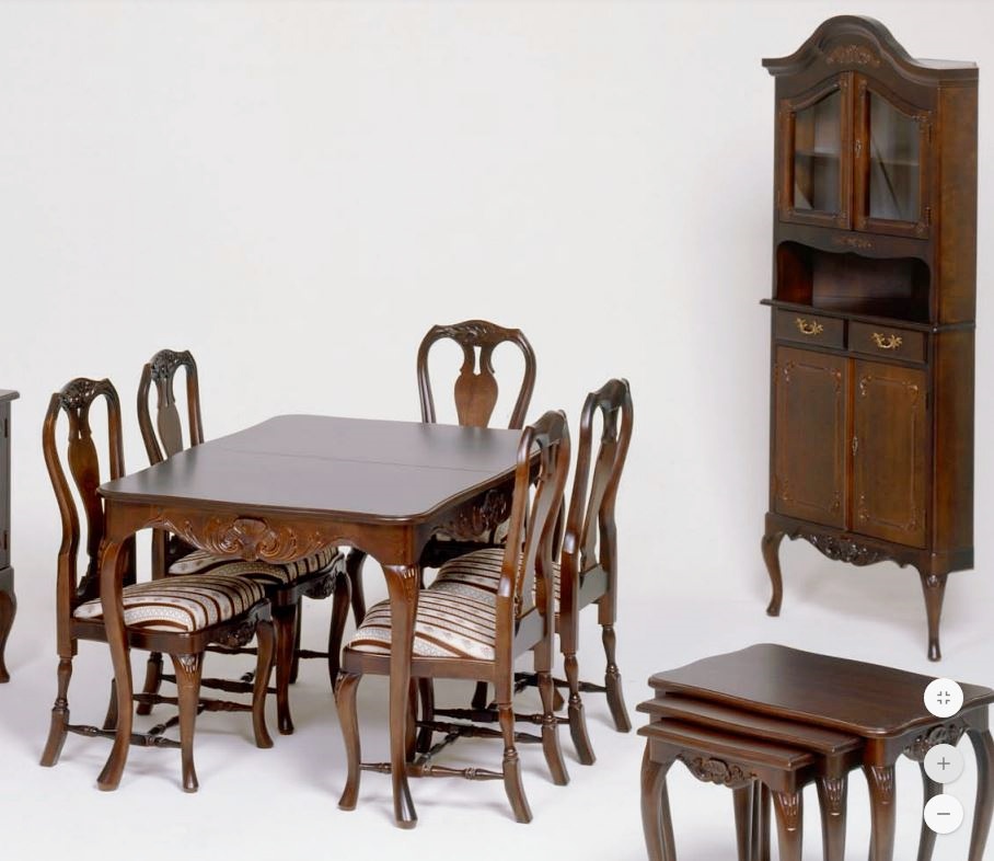 Tämä elegantti Talonpoikaisrokokoo-nurkkakaappi tuo kotiin sekä käytännöllisyyttä että klassista kauneutta. Alaosassa on kaappi, sen päällä kaksi laatikkoa ja avohylly, ja kokonaisuuden kruunaa vitriini kahdella hyllyllä – täydellinen yhdistelmä säilytystä ja esillepanoa.
