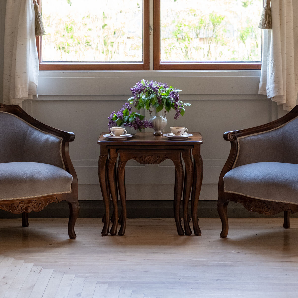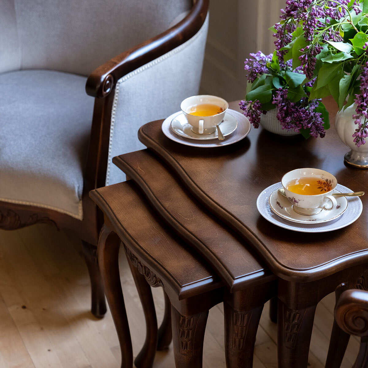 Kotimainen Talonpoikaisrokokoo sarjapöytäsetti – kolme pöytää, rajattomasti mahdollisuuksia