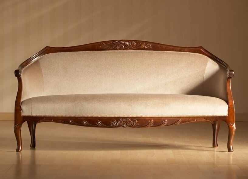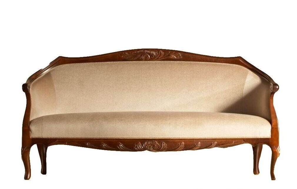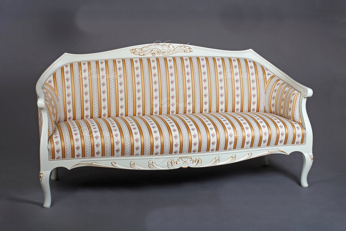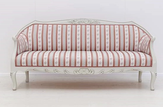 Kotimainen käsityö ja huolellinen viimeistely takaavat sohvan erinomaisen laadun. Sohva on saatavana useissa eri väreissä ja verhoiluissa sekä lisähinnasta sen voi viimeistellä käsin maalatulla kullan- tai harmaanvärisellä patinoinnilla, joka korostaa kauniita yksityiskohtia.