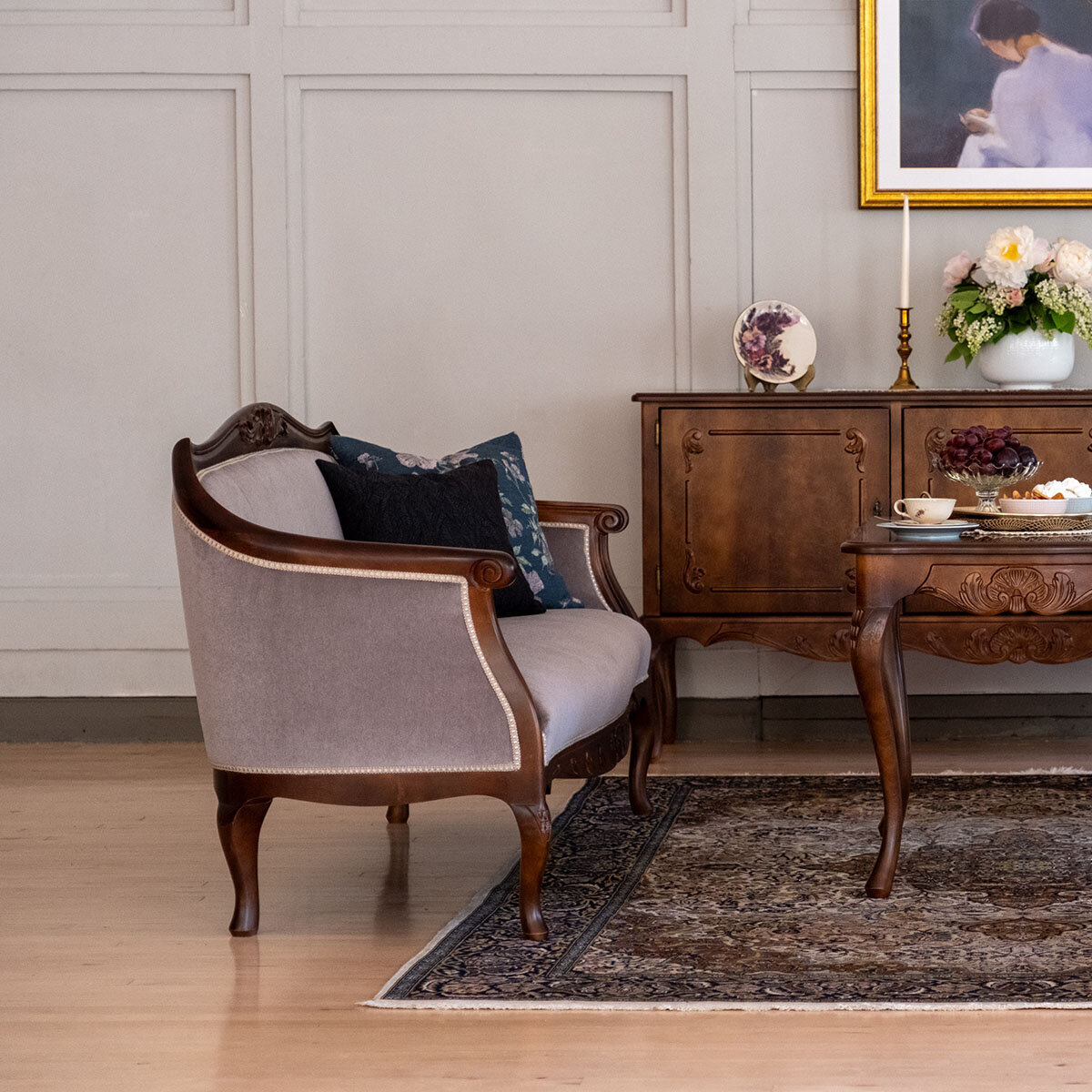 Kotimainen Talonpoikaisrokokoo sohva – klassista mukavuutta ja ajattoman kaunista käsityötä