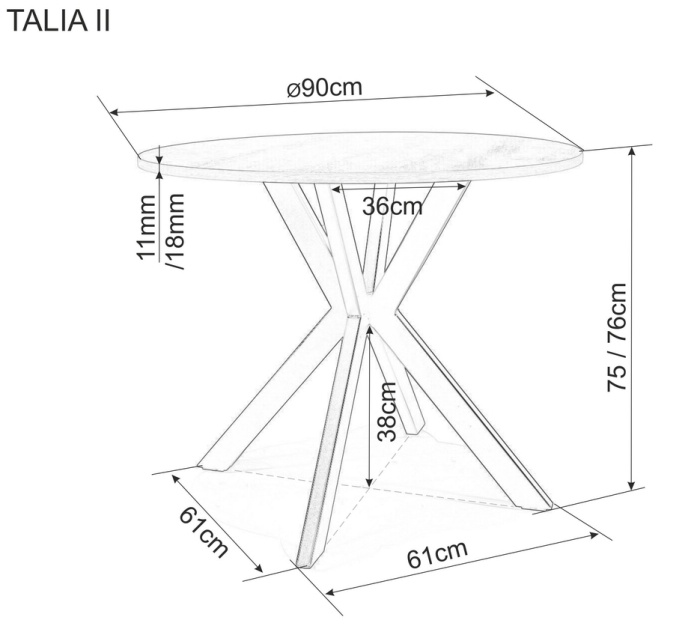 Teruel II pyöreä ruokapöytä tarjoaa kompaktin koon, tyylikkäät värivaihtoehdot ja kestävän rakenteen. Se sopii täydellisesti pieniin tiloihin ja tuo ruokailuhetkiin modernia eleganssia.