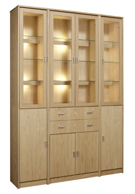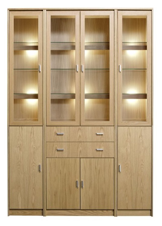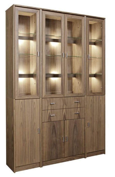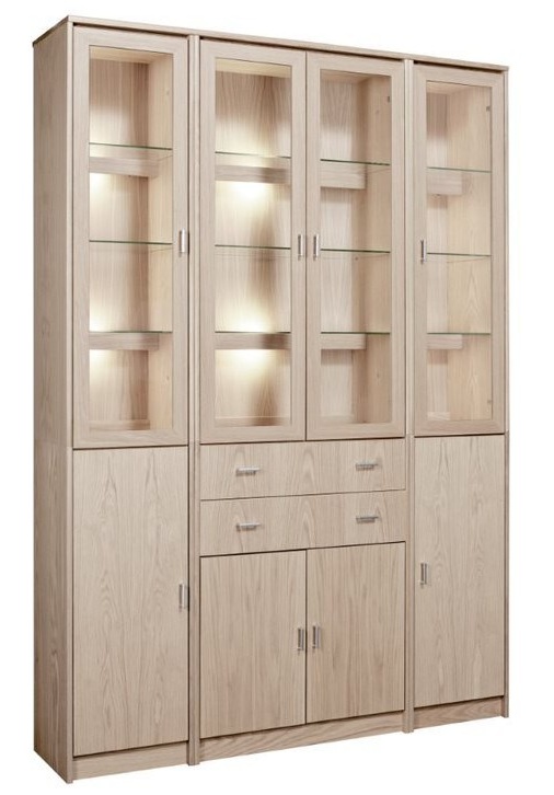 Vitriinissä on keskellä leveä kaappi laatikoilla ja umpiovilla ja reunoilla kapeat kaapit ja ylhäälllä vitriineissä on lasikehysovet. Vitriinin hyllyt saatavava joko lasisena tai puisina. Kokonaisuus on suunniteltu helposti räätälöitäväksi; voit valita vitriinin yhdellä värillä tai yhdistellä rungon, kannen ja oven eri sävyissä sekä halutessasi vaihtaa oven mallin sisustusta korostavaksi vaihtoehdoksi. Näin kaluste mukautuu elämäntilanteen ja tarpeiden muuttuessa.