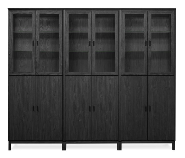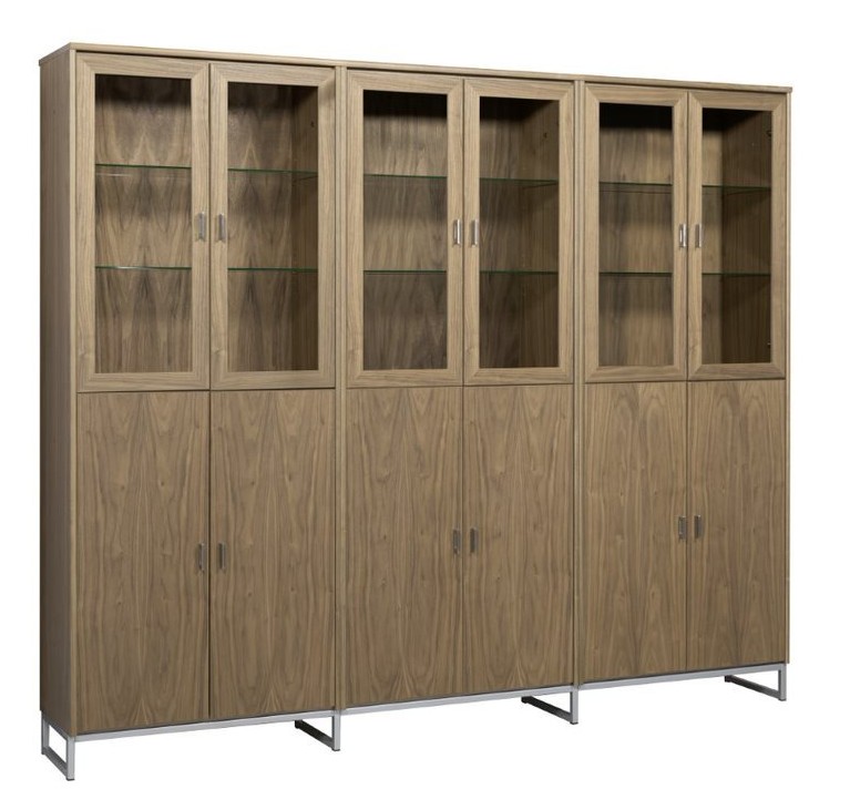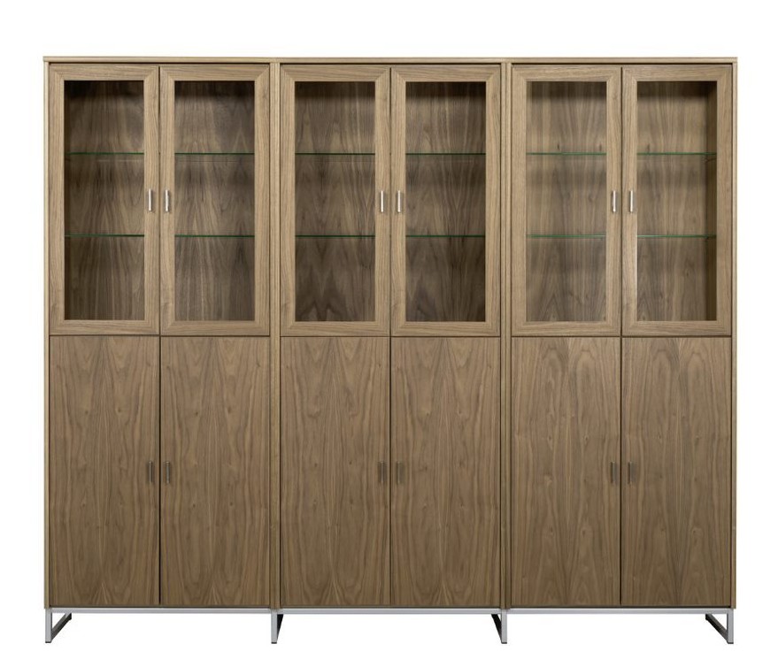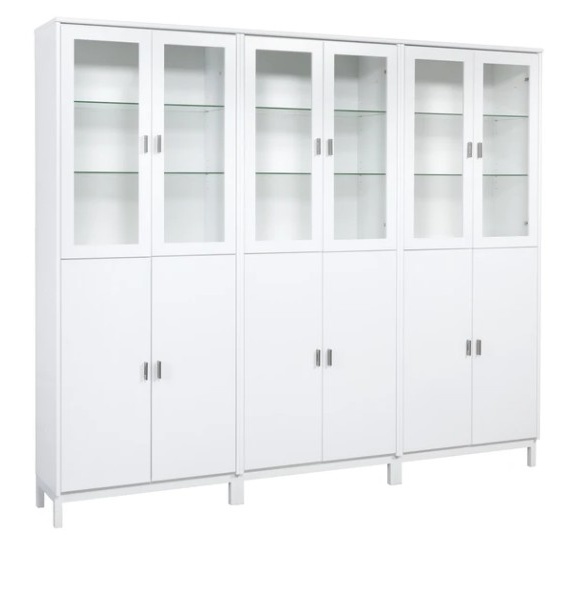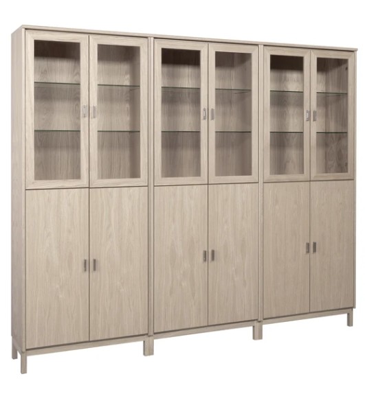 Hyllyssä on 3 leveää ja korkeaa kaappia alhaalla puuovilla ja ylhäällä lasikehysovilla. Vitriinin hyllyt saatavava joko lasisena tai puisina. Kokonaisuus on suunniteltu helposti räätälöitäväksi; voit valita vitriinin yhdellä värillä tai yhdistellä rungon, kannen ja oven eri sävyissä sekä halutessasi vaihtaa oven mallin sisustusta korostavaksi vaihtoehdoksi. Lisävarusteena tilattavissa hyllyjen taakse ledvalot joko tehdasasennettuna tai itseasennettavana himmentimellä tai ilman. Näin kaluste mukautuu elämäntilanteen ja tarpeiden muuttuessa.