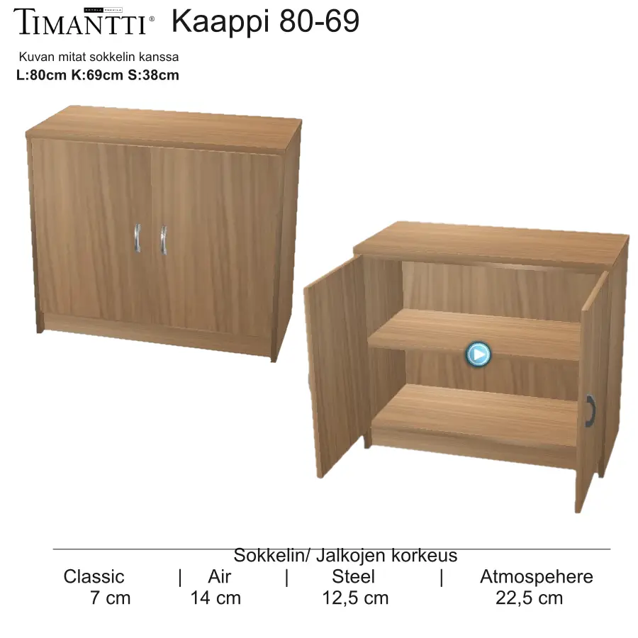 | 80 cm | 39 cm | 53 cm | cm | cm | cm | cm | cm | cm | cm | 14 cm | cm | cm | cm | cm | cm | cm | cm | cm | cm | cm | cm | cm | cm | cm | cm | cm | cm | cm | Tilaustuote | Elementit valmiiksi kasattu, Toimitus runko koottuna vain jalat/sokkeli ja kansi kiinnitetään | kg | Musta, Pähkinä, Tammi, Valkotammi, Valkoinen maalattu | Sokkeli, Air puujalka 47080, Atmosphere puujalka 47080-2, Steel metallijalka 7080-hopea, Steel metallijalka 447080-musta | Puukansi 310 KA •80 cm | 101 A, 7101 A, 7121 AOK | umpiovi • 209 UOM, umpiovi • 214 UOK | Pinta aitoa puuviilua, valkoisessa allergiatestattu kalustelevy jossa maali on vesiohenteinen ja liuotinvapaa, Näkyvät reunat massiivilistoitettuja eli täyttä puuta, Puujalat massiivipuuta, Vetimet metallia, Ovissa soft close mekanismi | Puuhylly | Vakio M3, Ferro Musta, Ferro Harmaa | Suomi | cm | cm | cm |
