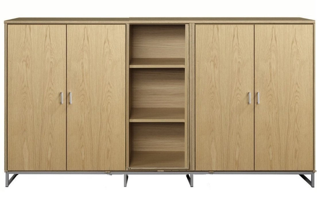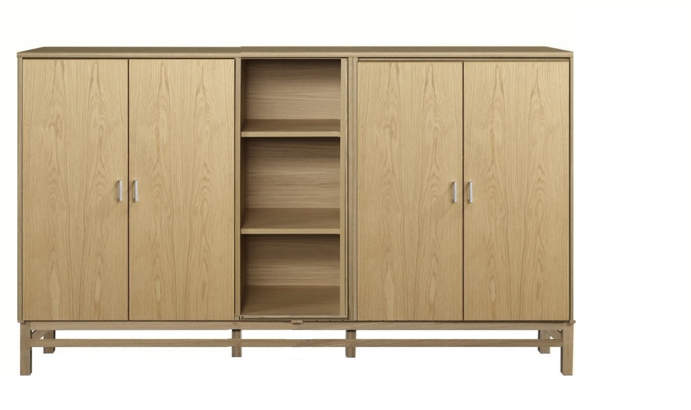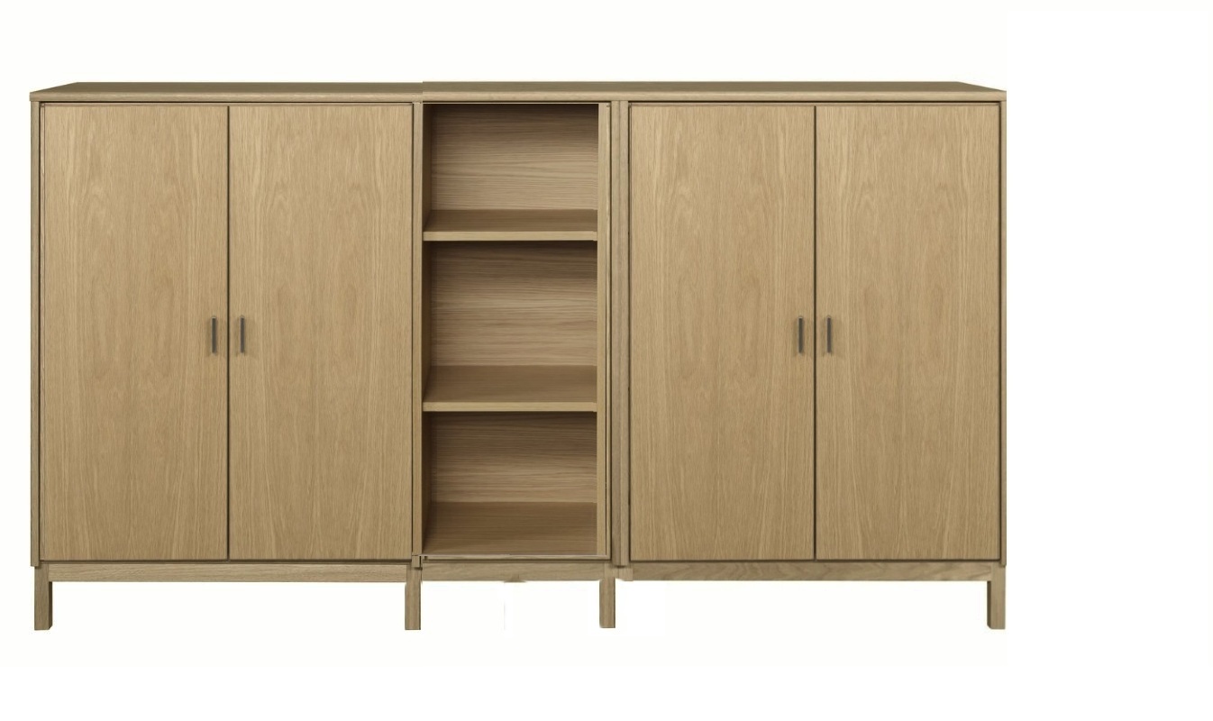 Senkissä on 3 kaappia josta reunalla 2 leveää kaappia ja keskellä kapea avohyllykkä ja reunoilla olevat kaapit ovat saatavana puuhyllyllyillä ja umpiovilla. Kokonaisuus on suunniteltu helposti räätälöitäväksi; voit valita senkin yhdellä värillä tai yhdistellä rungon, kannen ja oven eri sävyissä sekä halutessasi vaihtaa oven mallin sisustusta korostavaksi vaihtoehdoksi. Näin kaluste mukautuu elämäntilanteen ja tarpeiden muuttuessa.