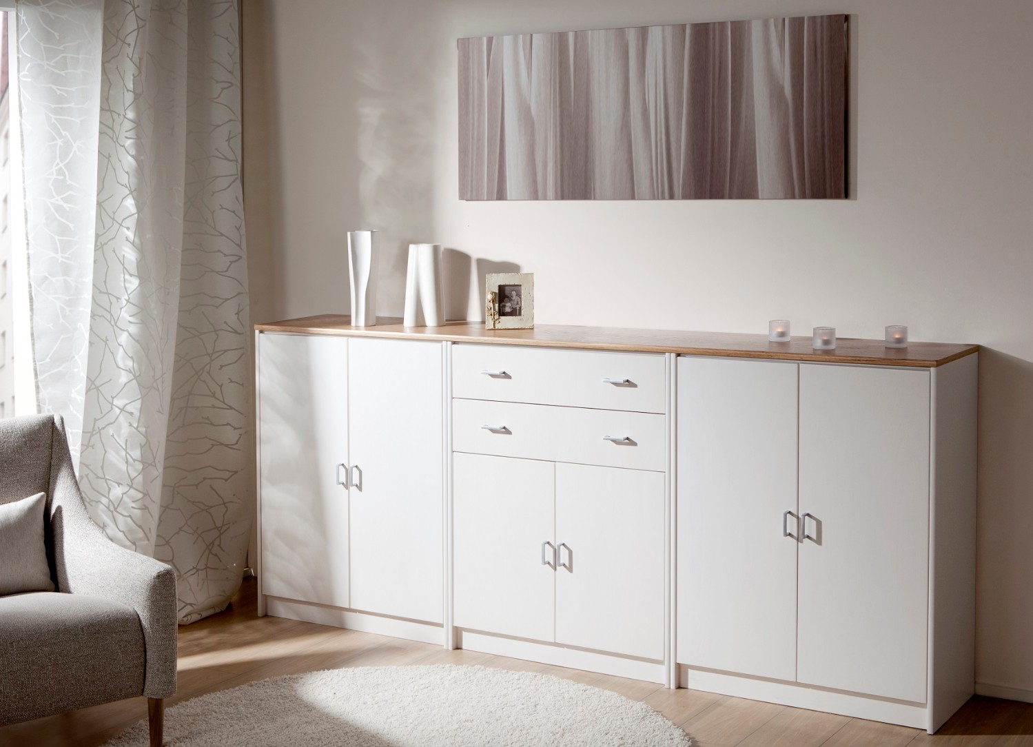 Senkissä on 3 kaappia josta reunalla 2 leveää kaappia ja keskellä kapea kaappi umpiovilla ja päällä 2 laatikkoa ja reunoilla olevat kaapit ovat saatavana puuhyllyllyillä ja umpiovilla. Kokonaisuus on suunniteltu helposti räätälöitäväksi; voit valita senkin yhdellä värillä tai yhdistellä rungon, kannen ja oven eri sävyissä sekä halutessasi vaihtaa oven mallin sisustusta korostavaksi vaihtoehdoksi. Näin kaluste mukautuu elämäntilanteen ja tarpeiden muuttuessa.