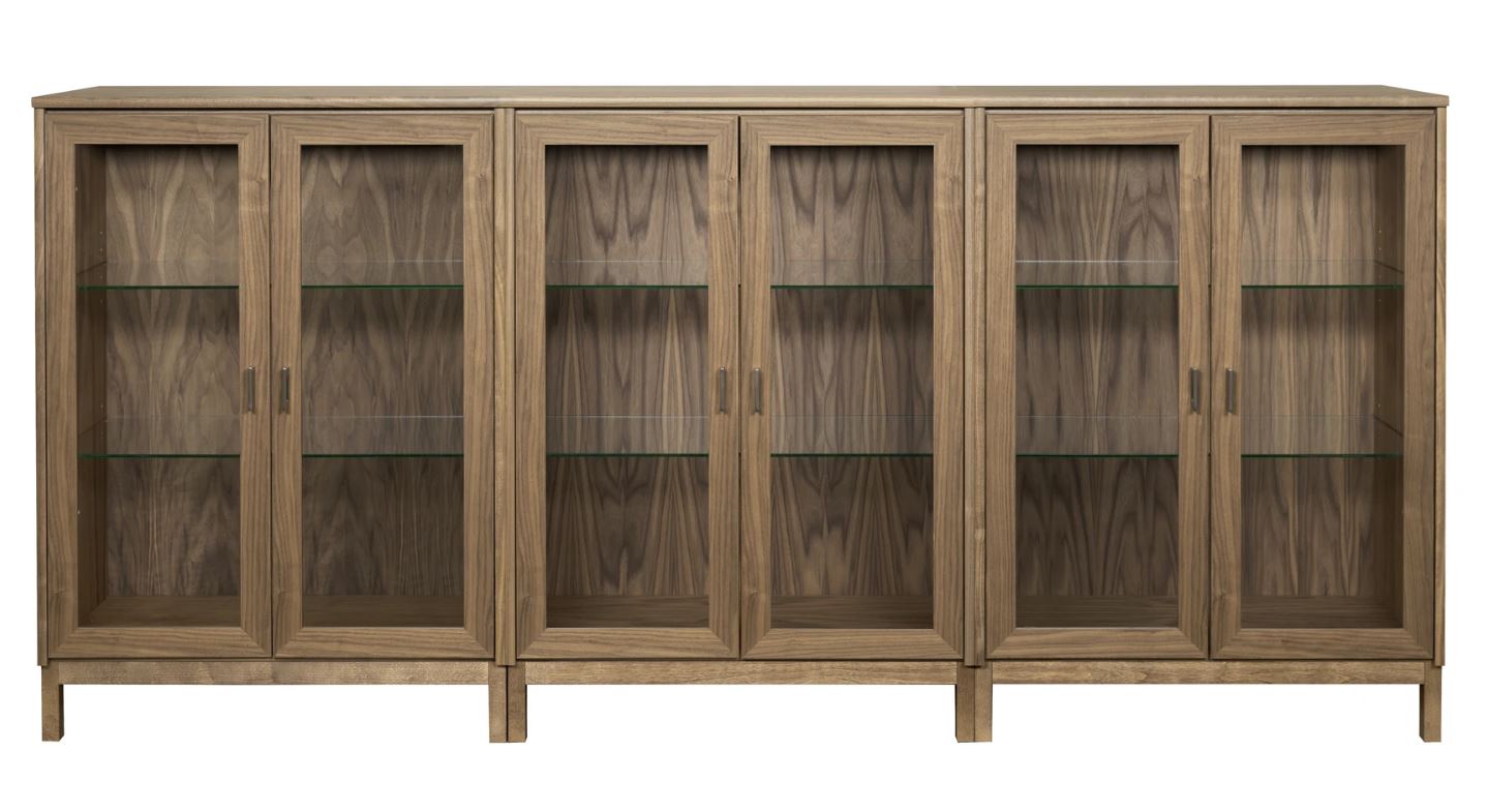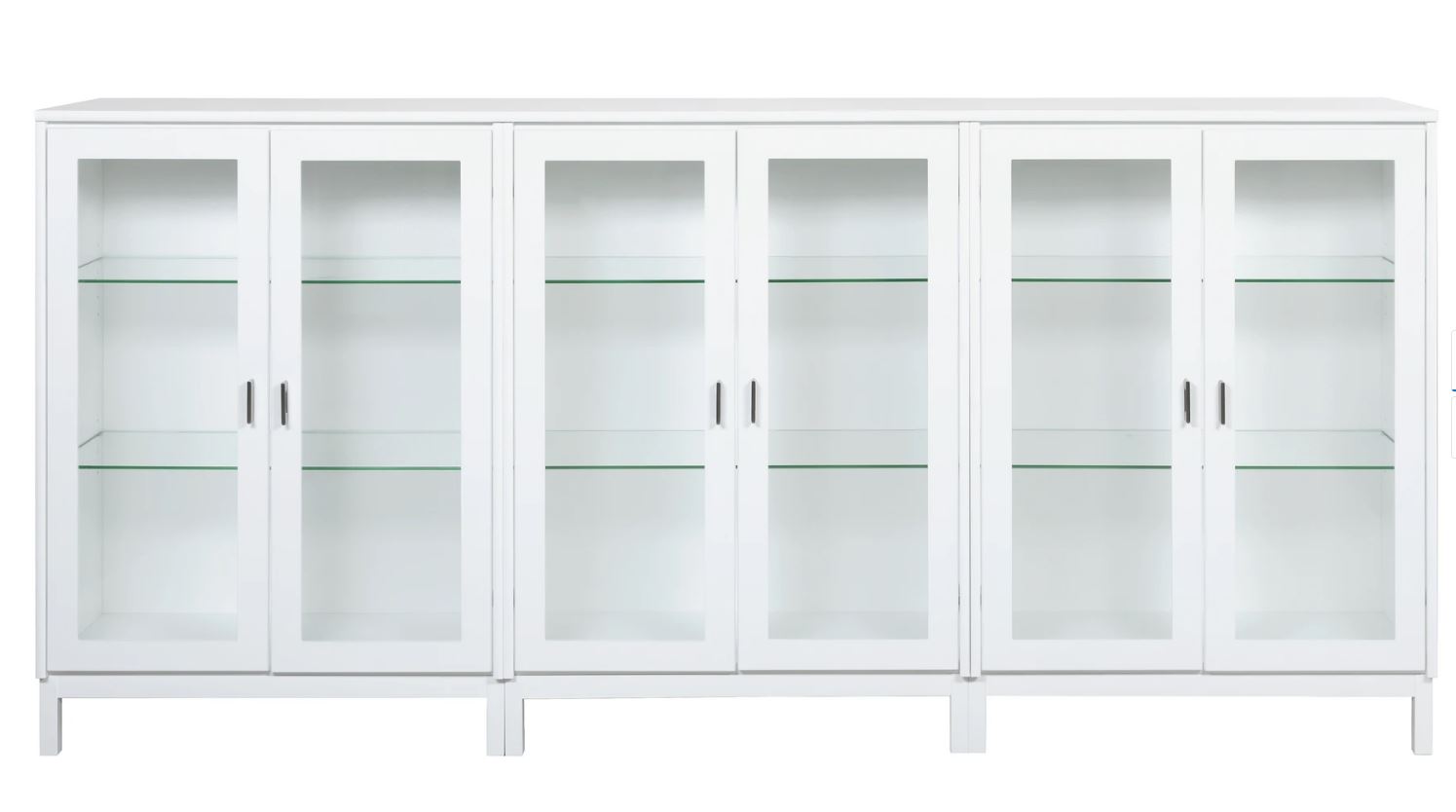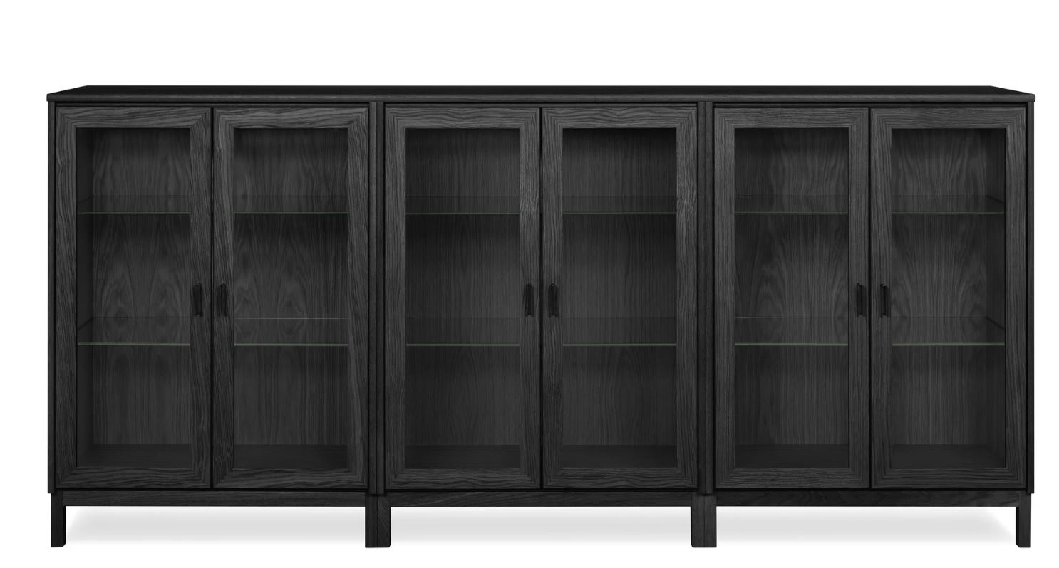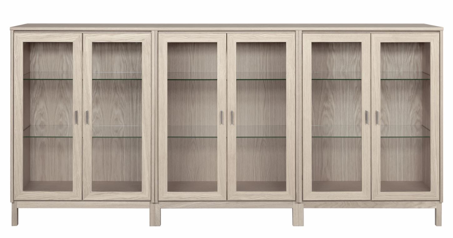 Senkissä on 3 kaappia joissa on lasikehysovet. Kokonaisuus on suunniteltu helposti räätälöitäväksi; voit valita senkin yhdellä värillä tai yhdistellä rungon, kannen ja oven eri sävyissä sekä halutessasi vaihtaa oven mallin sisustusta korostavaksi vaihtoehdoksi. Näin kaluste mukautuu elämäntilanteen ja tarpeiden muuttuessa.