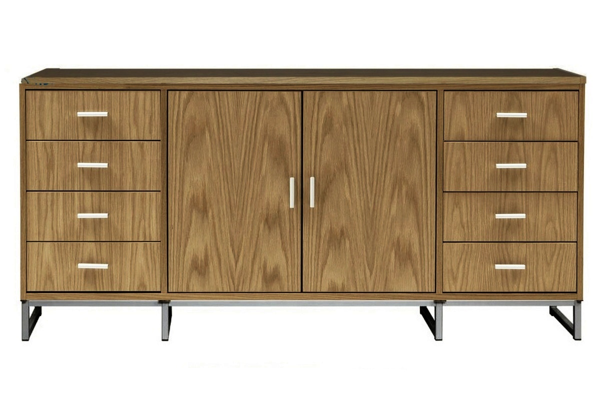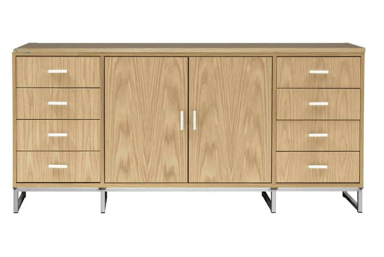 Tasossa on 2 laatikosta reunoilla ja keskellä kaappi umpiovilla. Kokonaisuus on suunniteltu helposti räätälöitäväksi; voit valita senkin yhdellä värillä tai yhdistellä rungon, kannen ja oven eri sävyissä sekä halutessasi vaihtaa oven mallin sisustusta korostavaksi vaihtoehdoksi. Näin kaluste mukautuu elämäntilanteen ja tarpeiden muuttuessa.