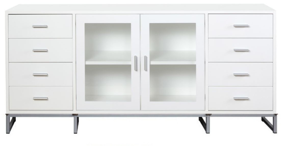 Tasossa on kaappi keskellä lasikehysovin ja reunoilla laatikostot. Kokonaisuus on suunniteltu helposti räätälöitäväksi; voit valita senkin yhdellä värillä tai yhdistellä rungon, kannen ja oven eri sävyissä sekä halutessasi vaihtaa oven mallin sisustusta korostavaksi vaihtoehdoksi. Näin kaluste mukautuu elämäntilanteen ja tarpeiden muuttuessa.