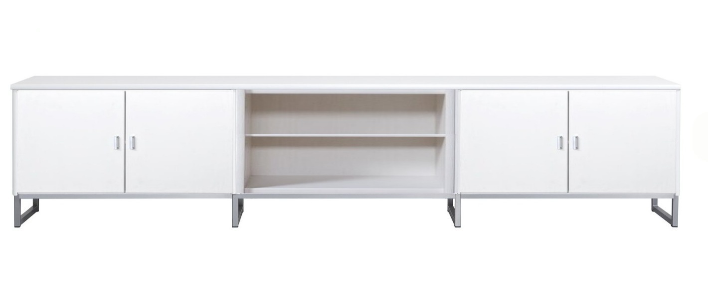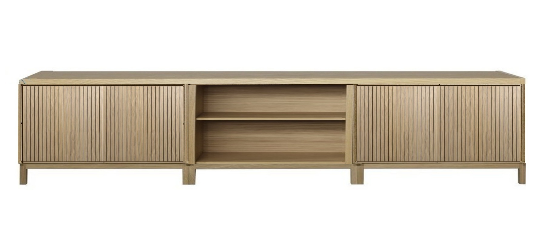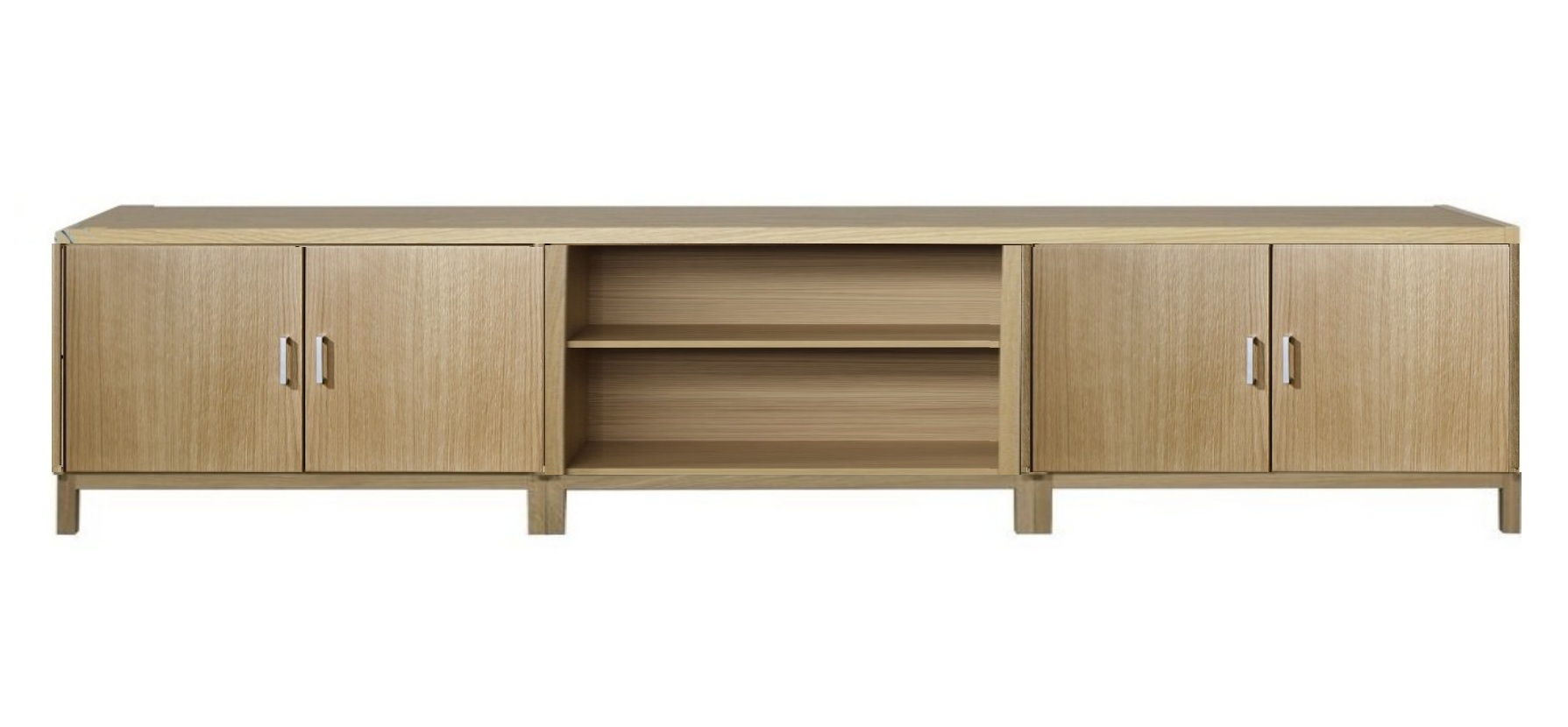 Tasossa on keskellö avohylly ja reunalla kaapit umpiovilla. Kokonaisuus on suunniteltu helposti räätälöitäväksi; voit valita senkin yhdellä värillä tai yhdistellä rungon, kannen ja oven eri sävyissä sekä halutessasi vaihtaa oven mallin sisustusta korostavaksi vaihtoehdoksi. Näin kaluste mukautuu elämäntilanteen ja tarpeiden muuttuessa.