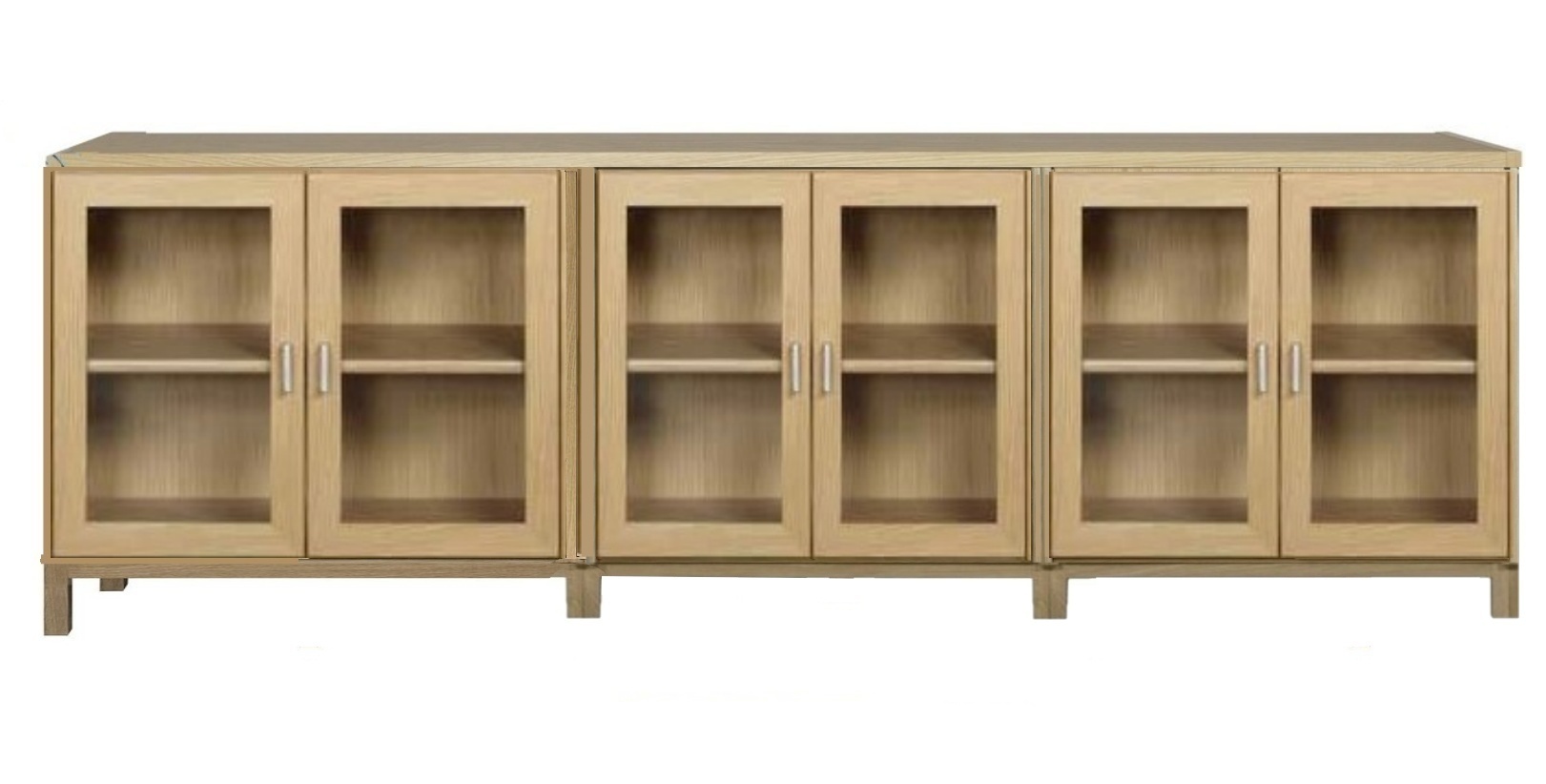 Tasossa on 3 kaappi lasikehysovilla. Kokonaisuus on suunniteltu helposti räätälöitäväksi; voit valita senkin yhdellä värillä tai yhdistellä rungon, kannen ja oven eri sävyissä sekä halutessasi vaihtaa oven mallin sisustusta korostavaksi vaihtoehdoksi. Näin kaluste mukautuu elämäntilanteen ja tarpeiden muuttuessa.