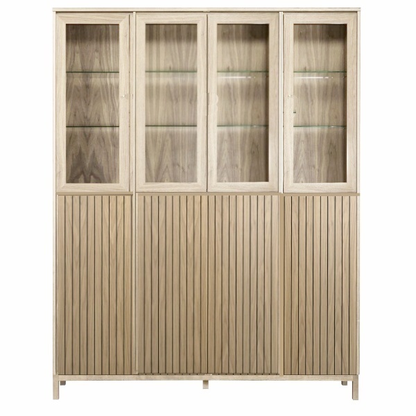 Vitriinissä on keskellä leveä kaappi ja reunoilla kapeat kaapit. Alhaalla puuovet ja ylhäälllä vitriinissä on lasikehysovet. Vitriinin hyllyt saatavava joko lasisena tai puisina. Kokonaisuus on suunniteltu helposti räätälöitäväksi; voit valita vitriinin yhdellä värillä tai yhdistellä rungon, kannen ja oven eri sävyissä sekä halutessasi vaihtaa oven mallin sisustusta korostavaksi vaihtoehdoksi. Näin kaluste mukautuu elämäntilanteen ja tarpeiden muuttuessa.