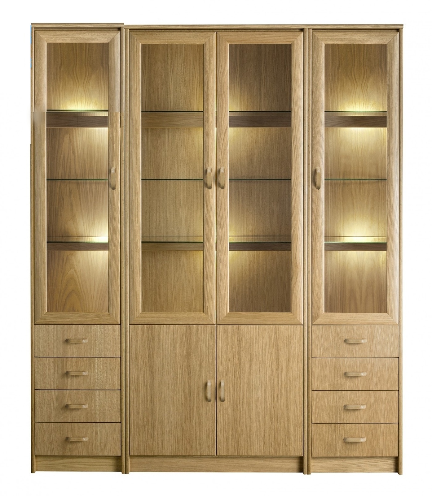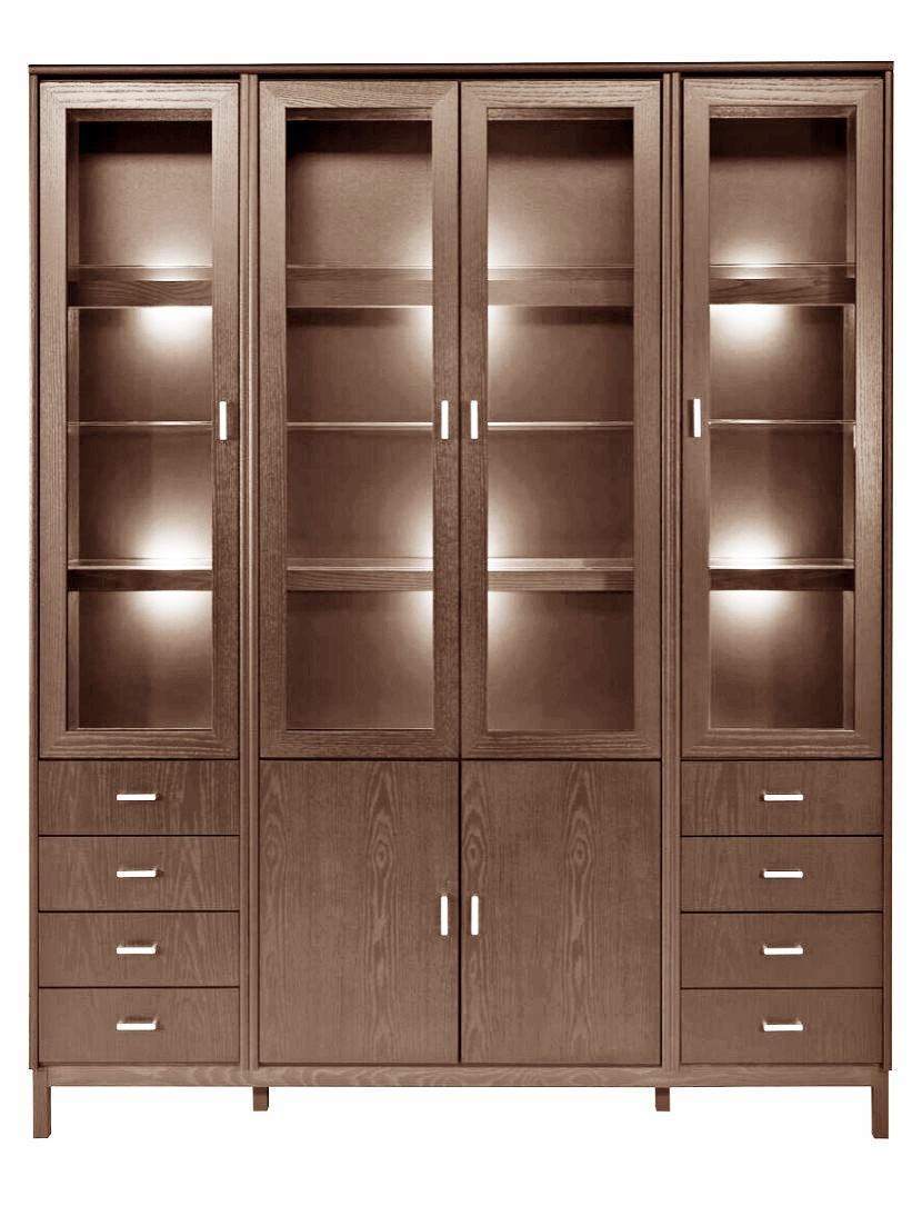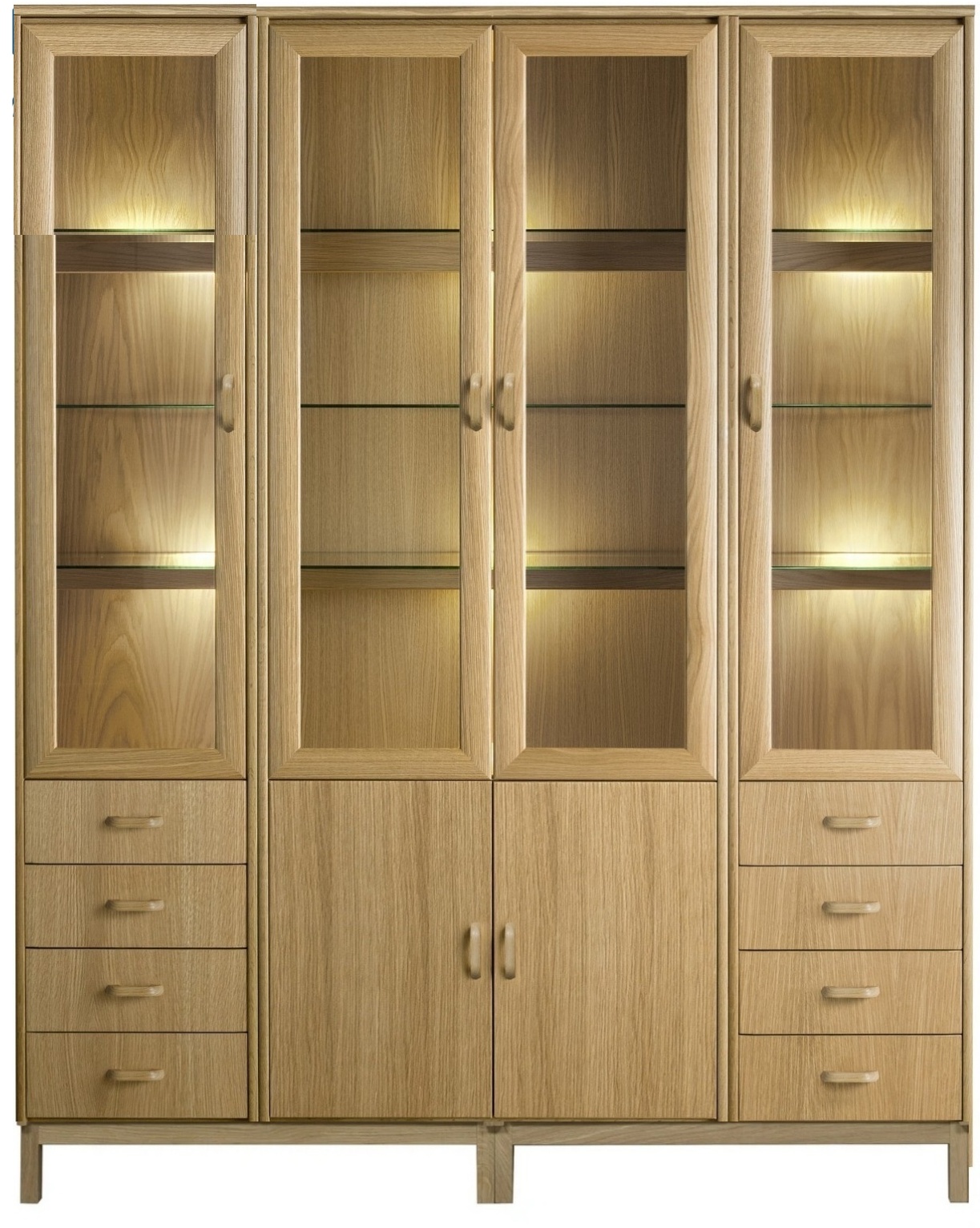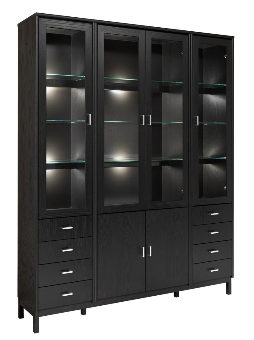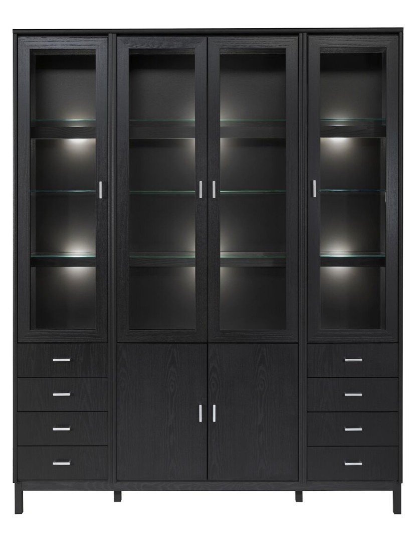 Vitriinissä on keskellä leveä kaappi ja reunoilla kapeat kaapit. keskellä alhaalla puuovet ja sivuilla laatikostot ja ylhäälllä vitriineissä on lasikehysovet. Vitriinin hyllyt saatavava joko lasisena tai puisina. Kokonaisuus on suunniteltu helposti räätälöitäväksi; voit valita vitriinin yhdellä värillä tai yhdistellä rungon, kannen ja oven eri sävyissä sekä halutessasi vaihtaa oven mallin sisustusta korostavaksi vaihtoehdoksi. Lisävarusteena tilattavissa hyllyjen taakse ledvalot joko tehdasasennettuna tai itseasennettavana himmentimellä tai ilman. Näin kaluste mukautuu elämäntilanteen ja tarpeiden muuttuessa.