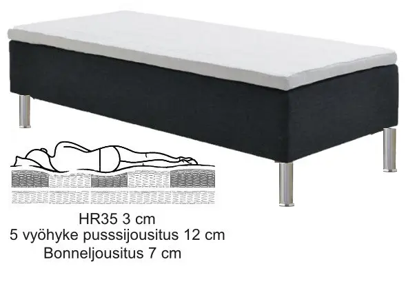 | 80 cm | 200 cm | 26 cm | cm | cm | cm | cm | cm | cm | cm | cm | cm | cm | cm | cm | cm | cm | cm | cm | cm | cm | cm | cm | cm | cm | cm | cm | 80x200 cm | Runkopatjan korkeus on ilmoitettu ilman jalkoja ja sijauspatjaa | Extra kova | cm | Alajousitus Bonneljousitus korkeus 7 cm, Jalat metallia, Keskellä strech kangas, Päällä vaahtomuovi HR35 3 cm, Runko massiivipuuta, Reunalla vaahtomuovi E25 7 cm, Vanu 80g/m2, Yläjousitus 5 vyöhykkeinen pussijousitus 12 cm | Jousiston yllä ja alla Vaahtomuovi 3 cm | Ace Kangas | Musta | Hopea | cm | Täystakuu tuotteelle 2 vuotta | Tilaustuote | 34 kg | Viro | cm | cm | cm |