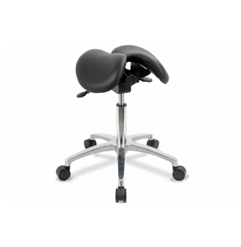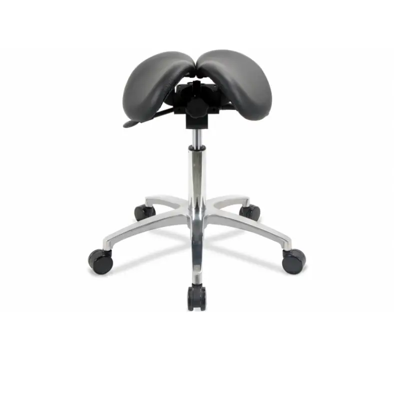 Toppe 40/2 -satulatuolissa on kaksiosainen, leveydeltään säädettävä istuin, joka mahdollistaa optimaalisen asennon ja vähentää lantion sekä alaselän rasitusta. Pehmustettu ja aidolla nahalla verhoiltu istuin tarjoaa ylellistä mukavuutta ja erinomaista tukea pitkäänkin työskentelyyn.