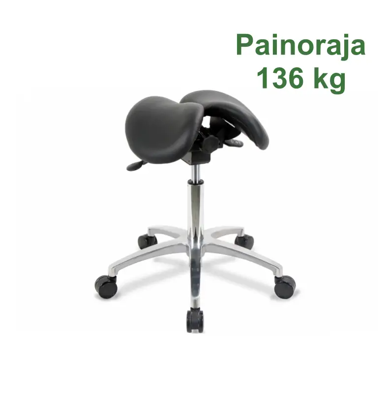 Toppe 40/2 satulatuoli tarjoaa kaksiosaisen, säädettävän ja aidolla nahalla verhoillun istuimen sekä kallistuksen ja korkeuden säädöt, jotka tuovat ergonomista mukautuvuutta eri käyttäjille. Kestävä alumiiniristikko, lukkiutuvat PU-pyörät ja 136 kg painoraja tekevät siitä pitkäikäisen ja luotettavan valinnan työtiloihin.