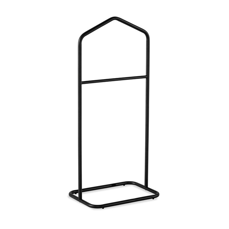 Pukuteline on valmistettu tukevasta metallirungosta ja viimeistelty ajattomalla mustalla sävyllä, joka on helppo yhdistää muuhun sisustukseen. Kestävä rakenne tekee siitä luotettavan arjen käytössä takeille, laukuillle ja asusteille.