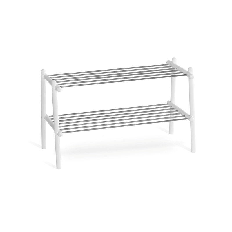 Twist-sarjan kenkäteline kahdella hyllyllä on upea ja käytännöllinen ratkaisu, joka auttaa pitämään eteisen siistinä ja järjestyksessä. Kahden hyllyn rakenne tarjoaa runsaasti tilaa kengille, mutta säilyttää silti kevyen ja ilmavan ilmeen myös pienemmissä tiloissa.