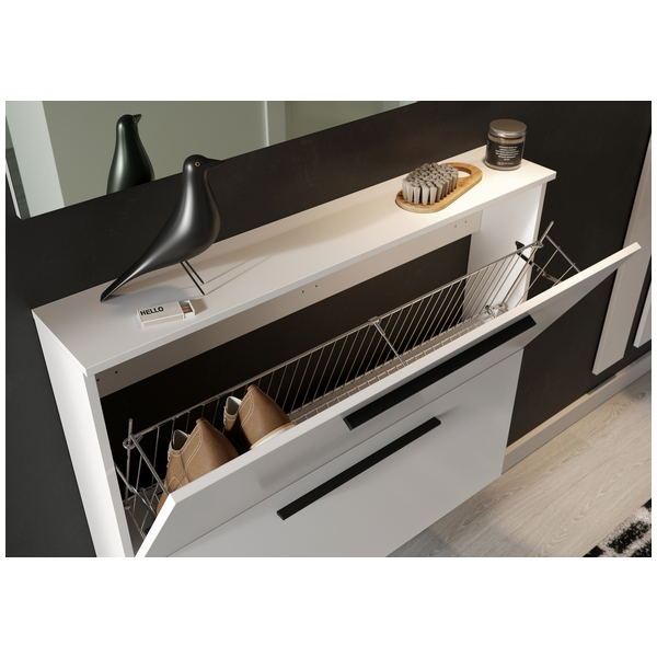 Utah kenkäkaappi 2575 tarjoaa tyylikkään ja käytännöllisen ratkaisun kenkien säilytykseen kahden klaffiovellisen kaapin ansiosta. Niihin mahtuu jopa kahdeksan kenkäparia, jolloin eteinen pysyy siistinä ja järjestyksessä ilman ylimääräistä vaivaa. Moderni muotoilu sopii täydellisesti nykyaikaiseen kotiin.