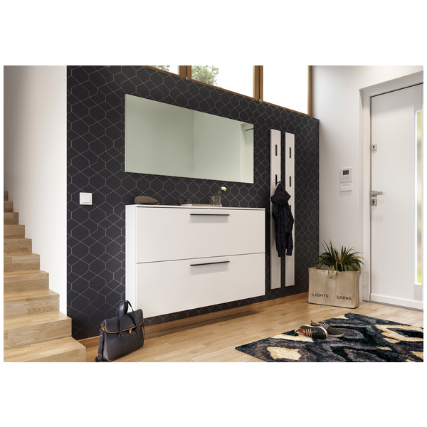 Kaapin voi kiinnittää kätevästi seinälle tai asettaa mukana tulevien mustien jalkojen päälle, jolloin se mukautuu erilaisiin tiloihin ja sisustuksiin. Tämä monipuolisuus tekee Utah-kaapista erinomaisen valinnan sekä pieniin että suuriin eteisiin. Käytännöllinen rakenne varmistaa helpon käytettävyyden päivittäin.