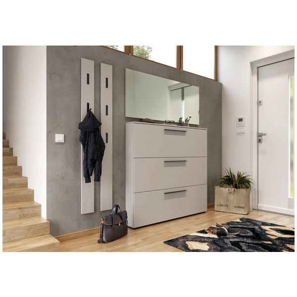 Utah kenkäkaappi 2577 tarjoaa kolme alaspäin avautuvaa klaffiovea, joihin mahtuu jopa 12 paria kenkiä siististi ja tehokkaasti. Selkeä ja moderni muotoilu pitää eteisen järjestyksessä ja tuo tilaan raikkaan, huolitellun ilmeen.